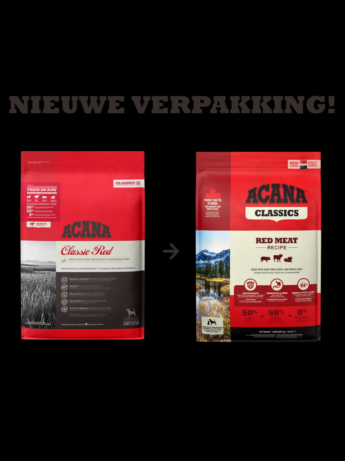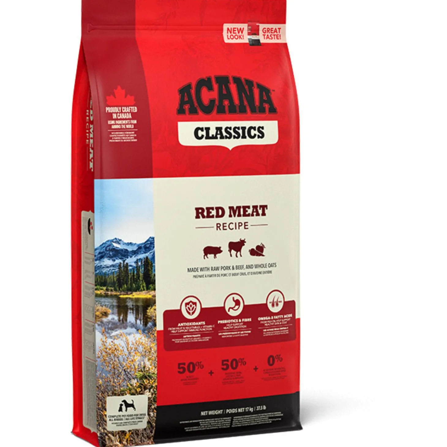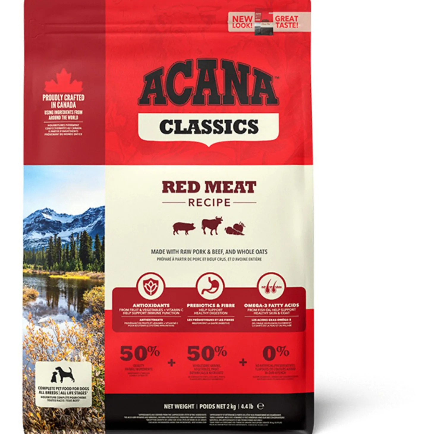 De voeding van ACANA is volgens het Biologically Appropriate-principe bereid en zit vol waardevolle voedingsstoffen voor een perfecte voeding van honden van alle rassen en leeftijden. ACANA Classics Classic Red bestaat uit 50% dierlijke ingrediënten en 50% plantaardige ingrediënten. Zij maken gebruik van glutenvrije haver voor een gelijkmatige energieafgifte.