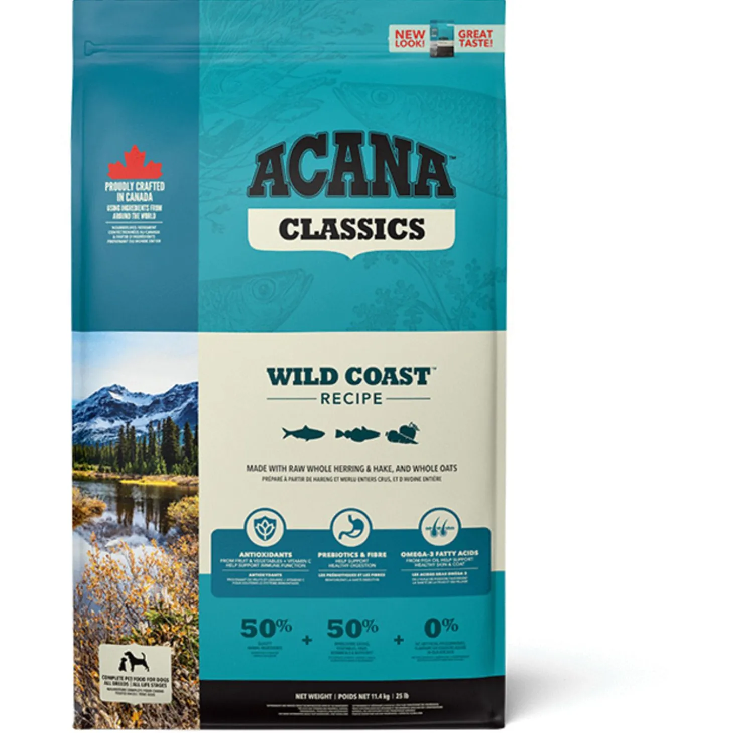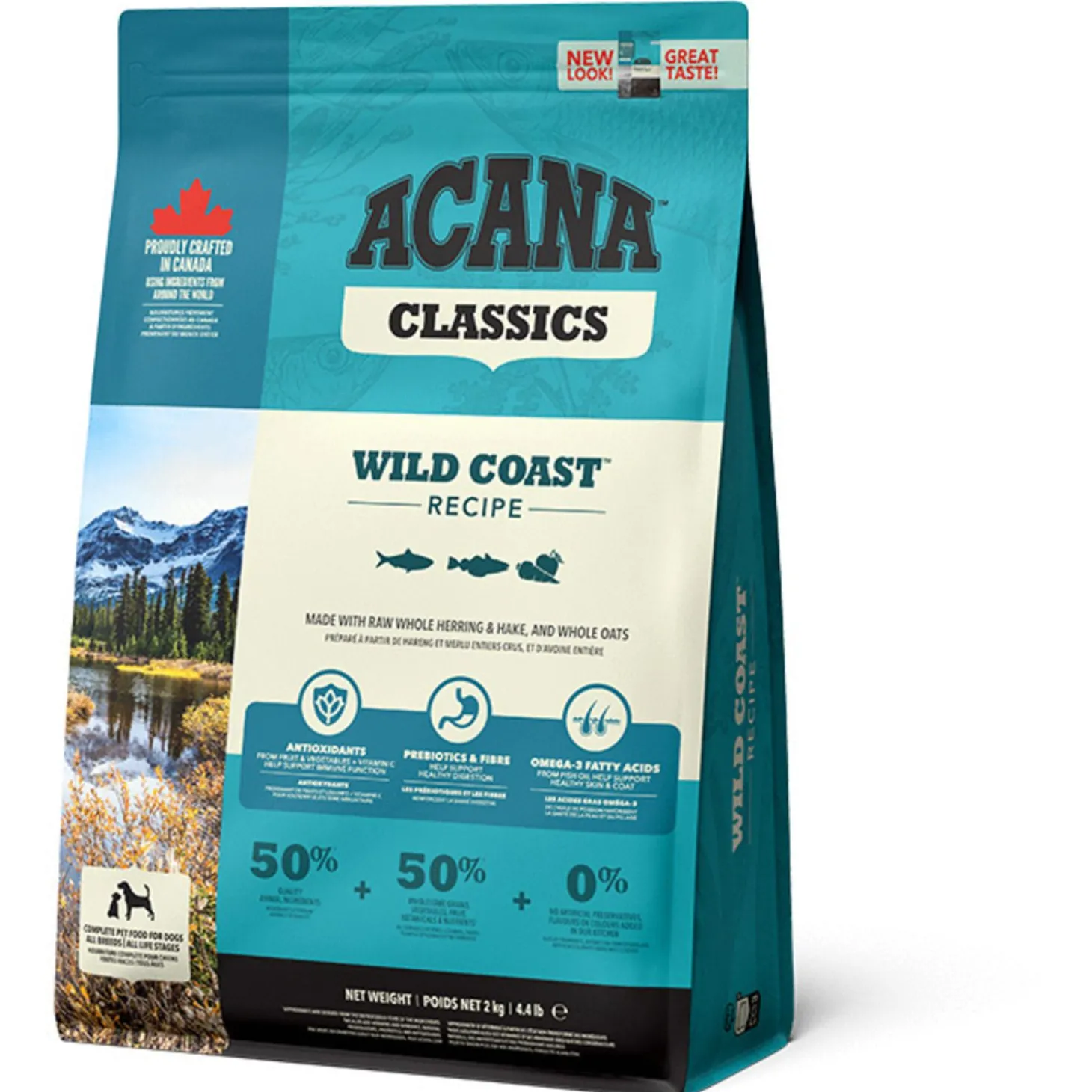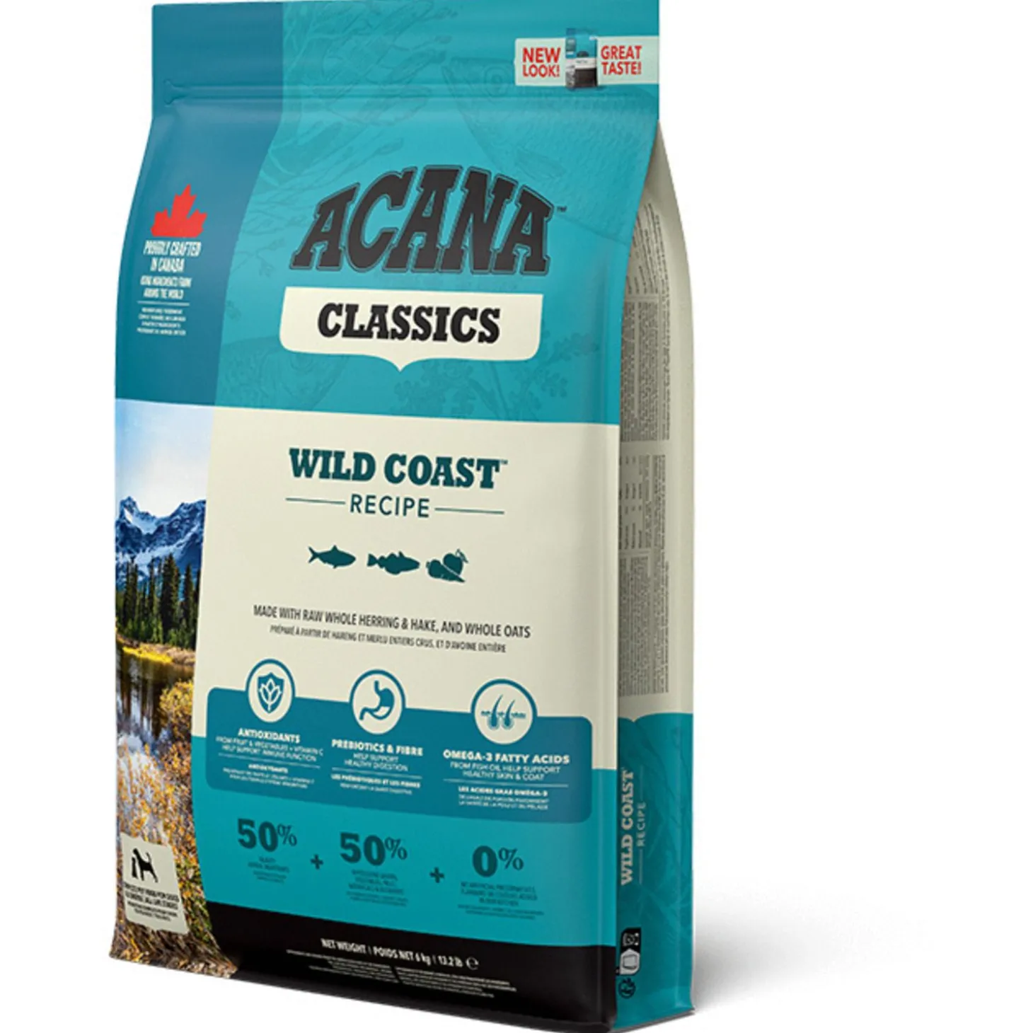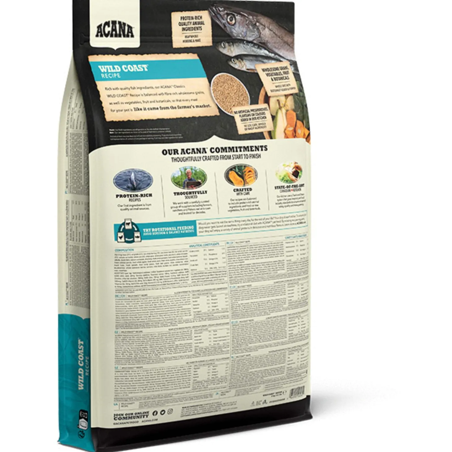De voeding van ACANA is volgens het Biologically Appropriate-principe bereid en zit vol waardevolle voedingsstoffen voor een perfecte voeding van honden van alle rassen en leeftijden. ACANA Wild Coast bestaat uit 50% dierlijke ingrediënten en 50% plantaardige ingrediënten. Zij maken gebruik van glutenvrije haver voor een gelijkmatige energieafgifte.