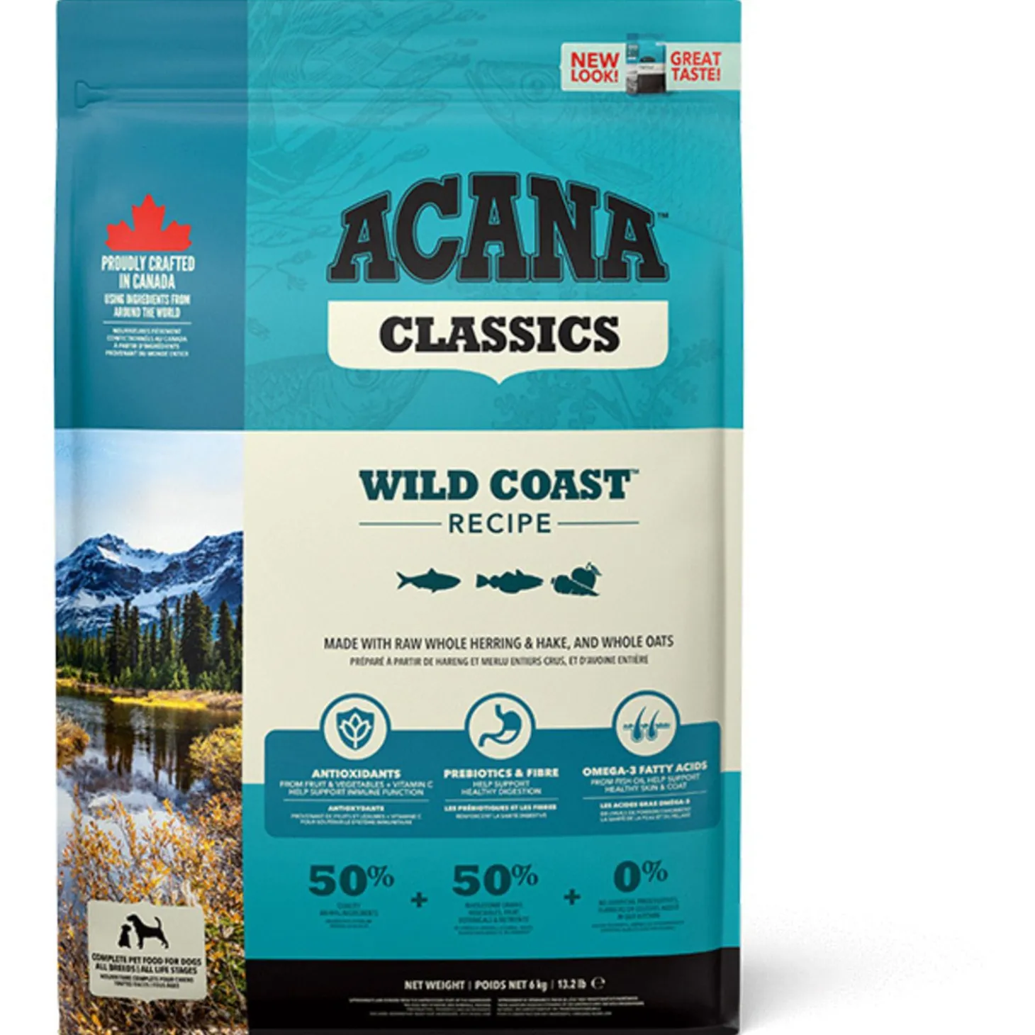 Jij wilt natuurlijk het beste geven aan je hond en honden blijven gezond en fit als ze hetzelfde eiwitrijke dieet eten als hun voorouders! Classics Wild Coast van ACANA zit boordevol voedende eiwitten en omega-vetzuren van haring, bot en heek. Zo krijgt je hond alles heeft wat hij nodig heeft om gezond en gelukkig te blijven!