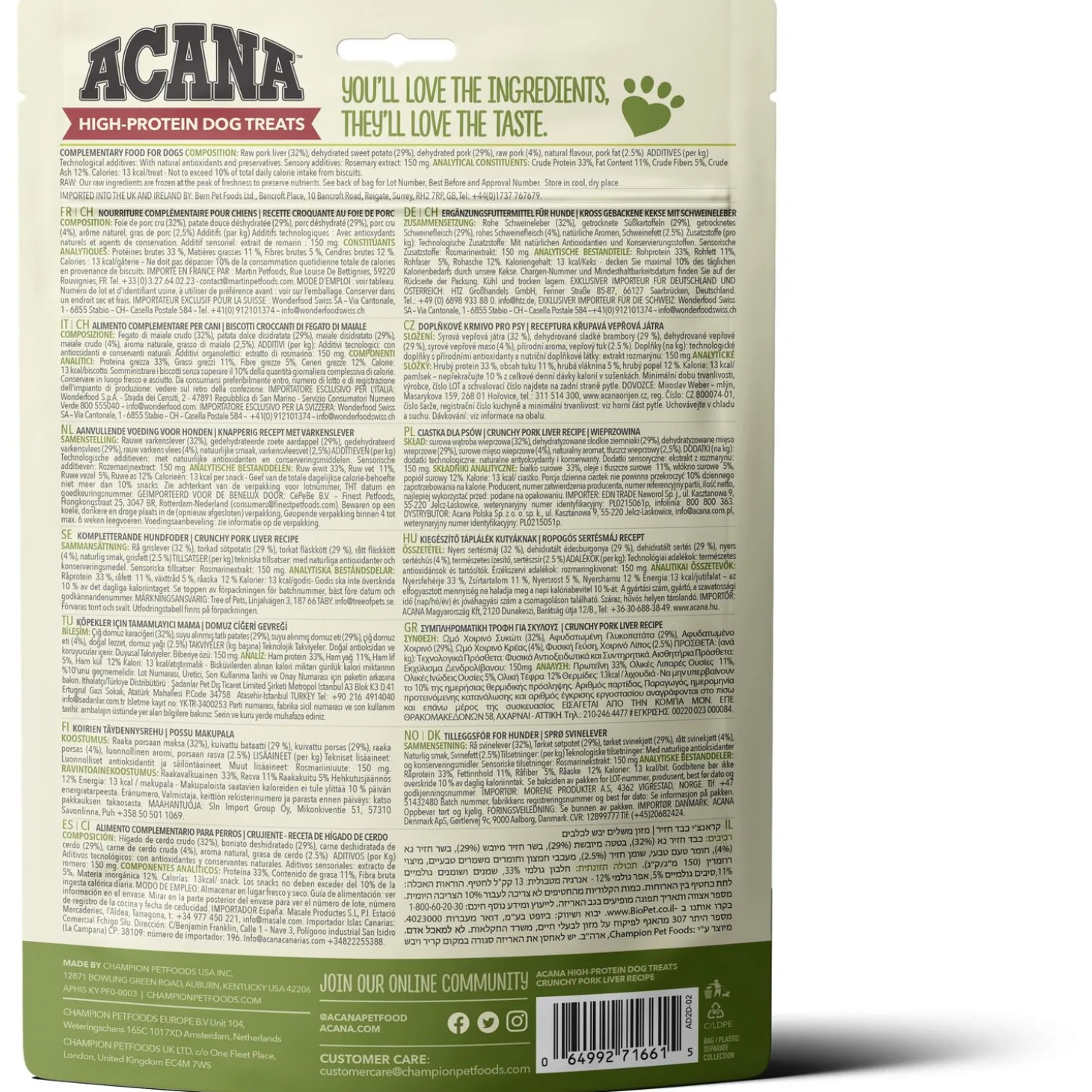 | Samenstelling | Rauwe varkenslever (32%), gedehydrateerde zoete aardappel (29%), gedehydrateerd varkensvlees (29%), rauw varkens vlees (4%), natuurlijke smaak, varkensvleesvet (2,5%) |