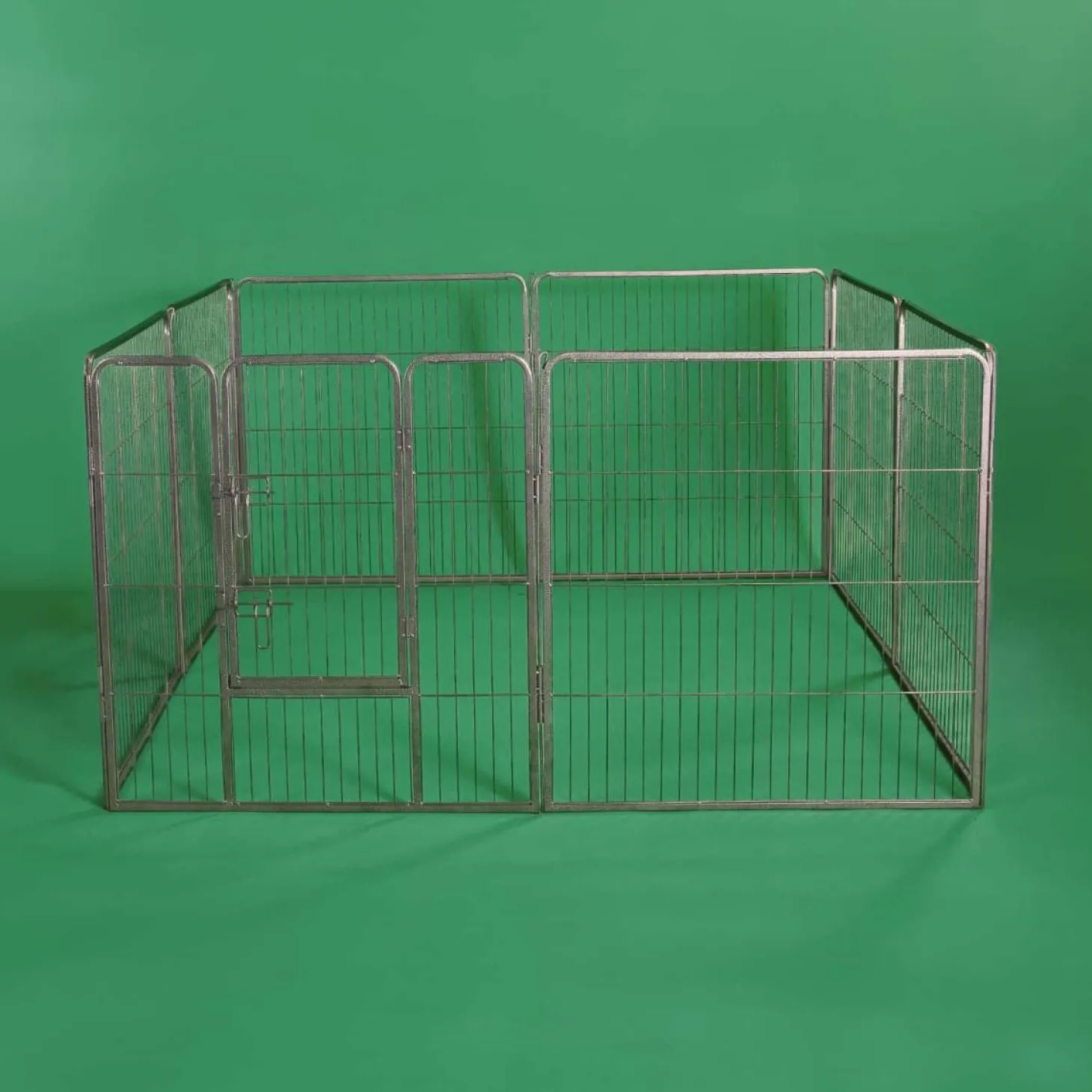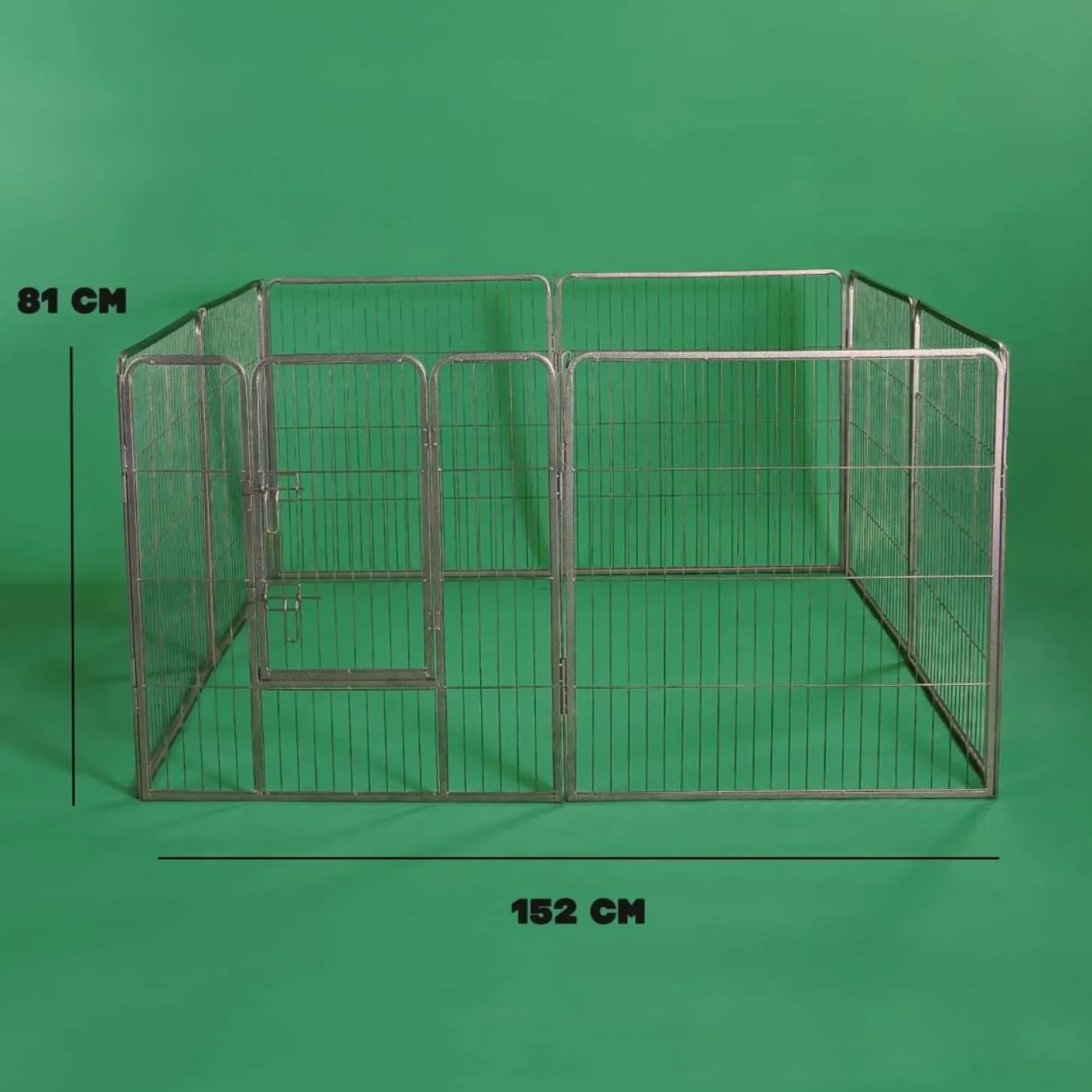 Deze 8-Hoekige Puppy Ren is zeer stabiel en van hoge kwaliteit, ideaal voor het grootbrengen van je pups. Met behulp van deze ren kunnen ze lekker vrij bewegen zonder dat je ze constant in de gaten hoeft te houden. De ren beschikt over acht panelen die met koppelpinnen gemakkelijk in elkaar te zetten zijn. Je kan de panelen zelf neerzetten als gewenst, zoals een cirkel, rechthoek of vierkant. De zware hamerslagcoating beschermt de ren tegen weersinvloeden, zorg er wel voor dat je de puppy ren niet buiten in de regen zet.