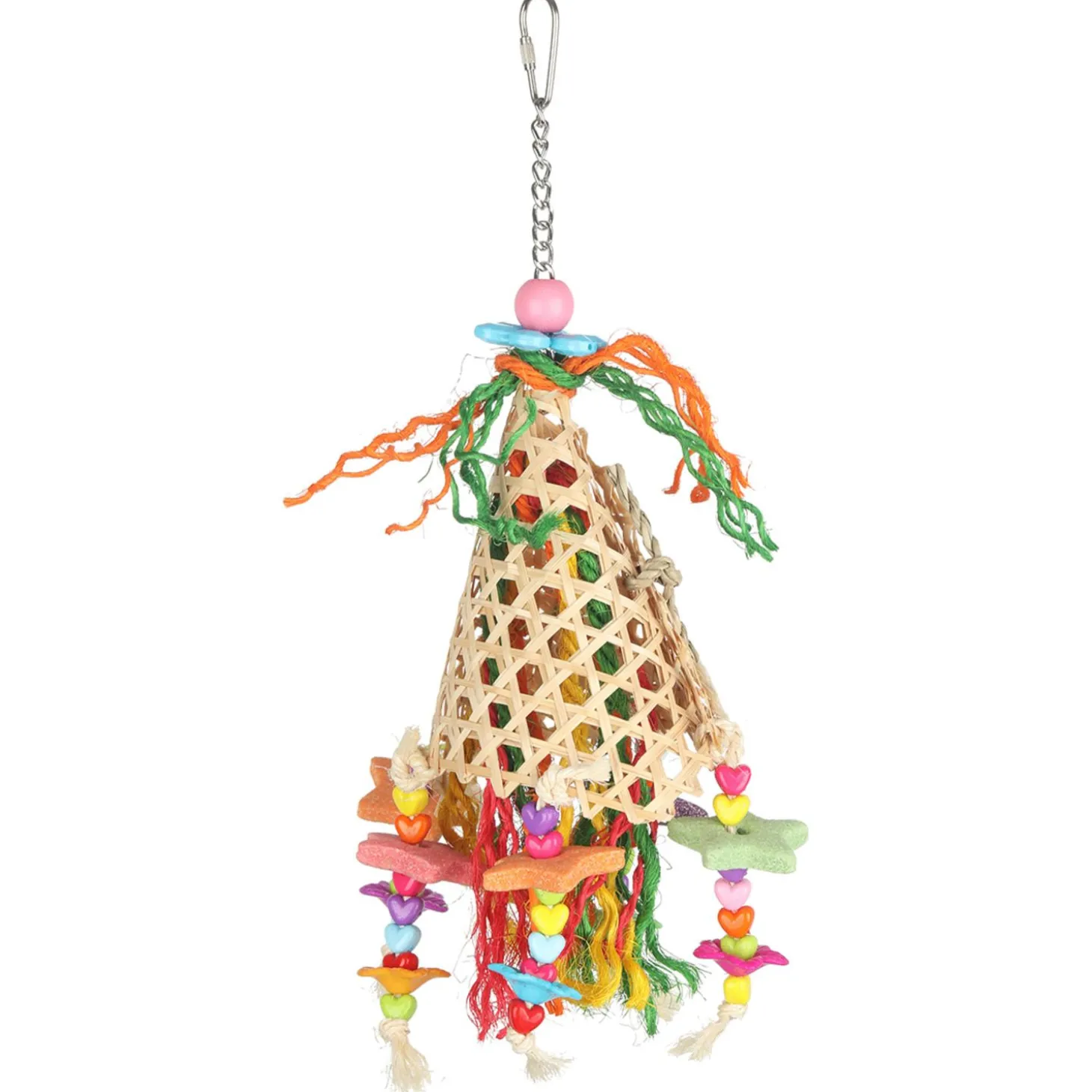De Adori Bamboo Cone Carousel is een feest voor je vogel. Het unieke kegelvormige ontwerp van bamboe bevat kleurrijke kralen, hartjes en sterren die je vogel uitnodigen om te klimmen en te ontdekken. De verschillende texturen en kleuren zorgen voor zintuiglijke stimulatie, terwijl de open structuur je vogel de mogelijkheid geeft om voedsel te zoeken tussen de verschillende onderdelen – perfect om het natuurlijke foerageergedrag te bevorderen.