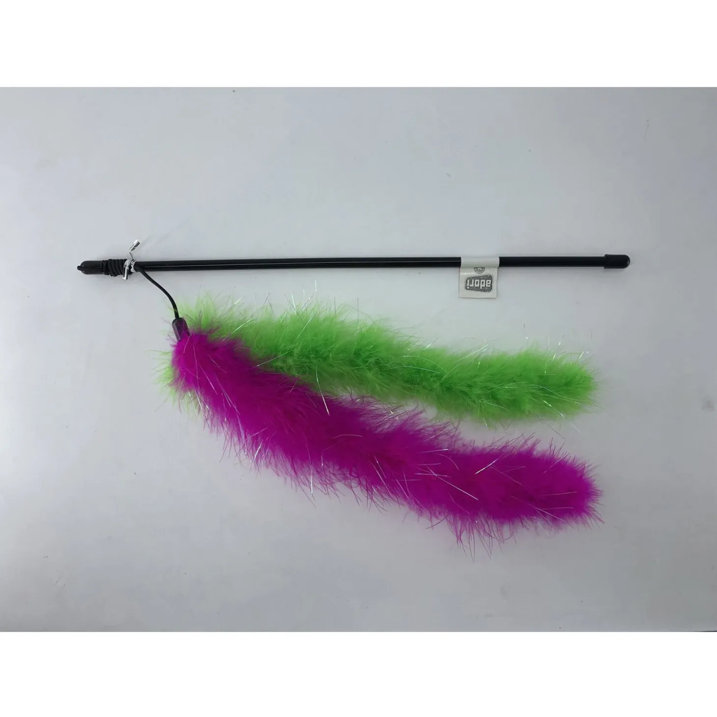 De Cat Glitter Teaser van het merk Adori is een speelhengel voor de kat. Deze hengel bevat vrolijke veren in verschillende kleuren die alle kanten op springen als je met de hengel zwaait. De glittersprieten in de veren zorgen voor een extra speels effect.
