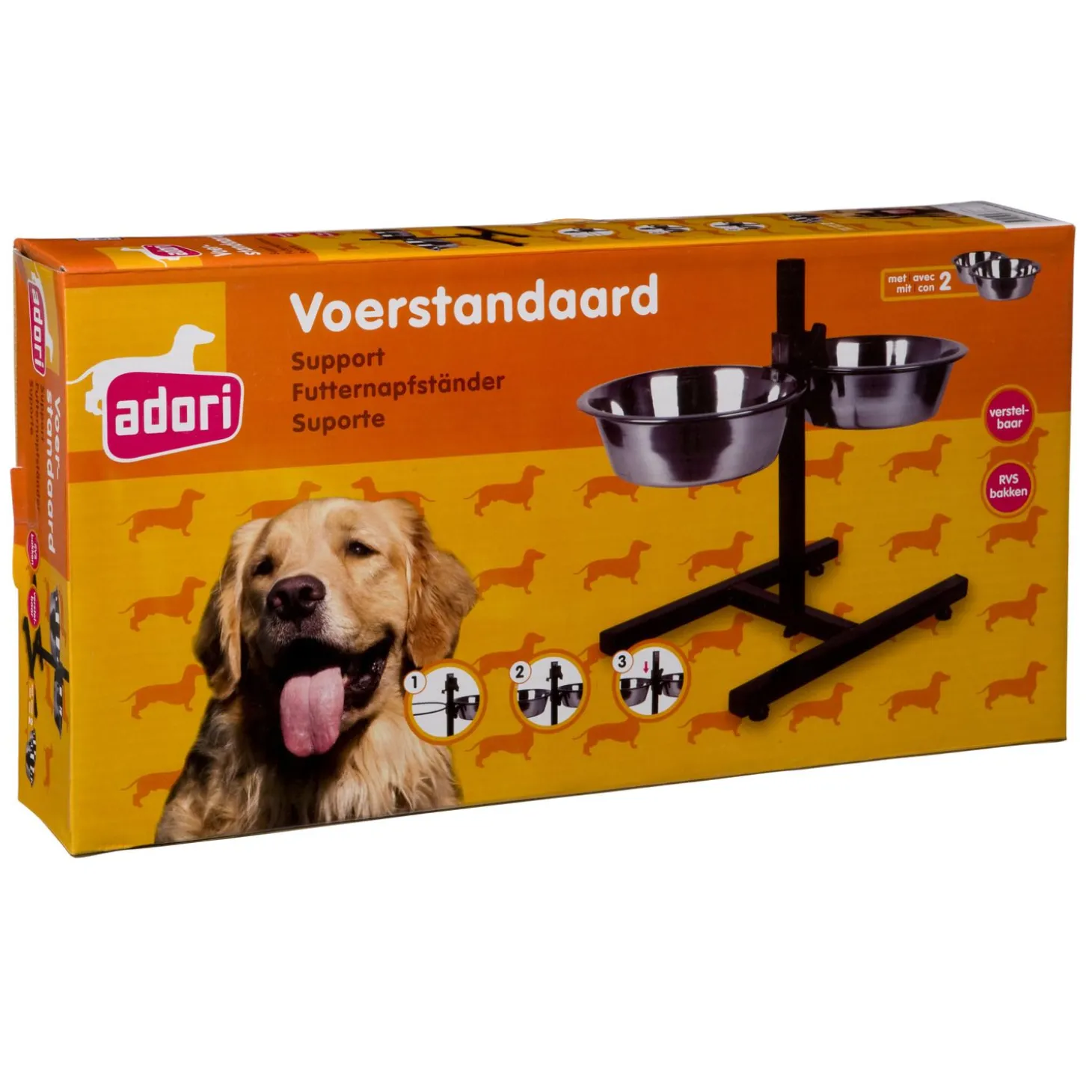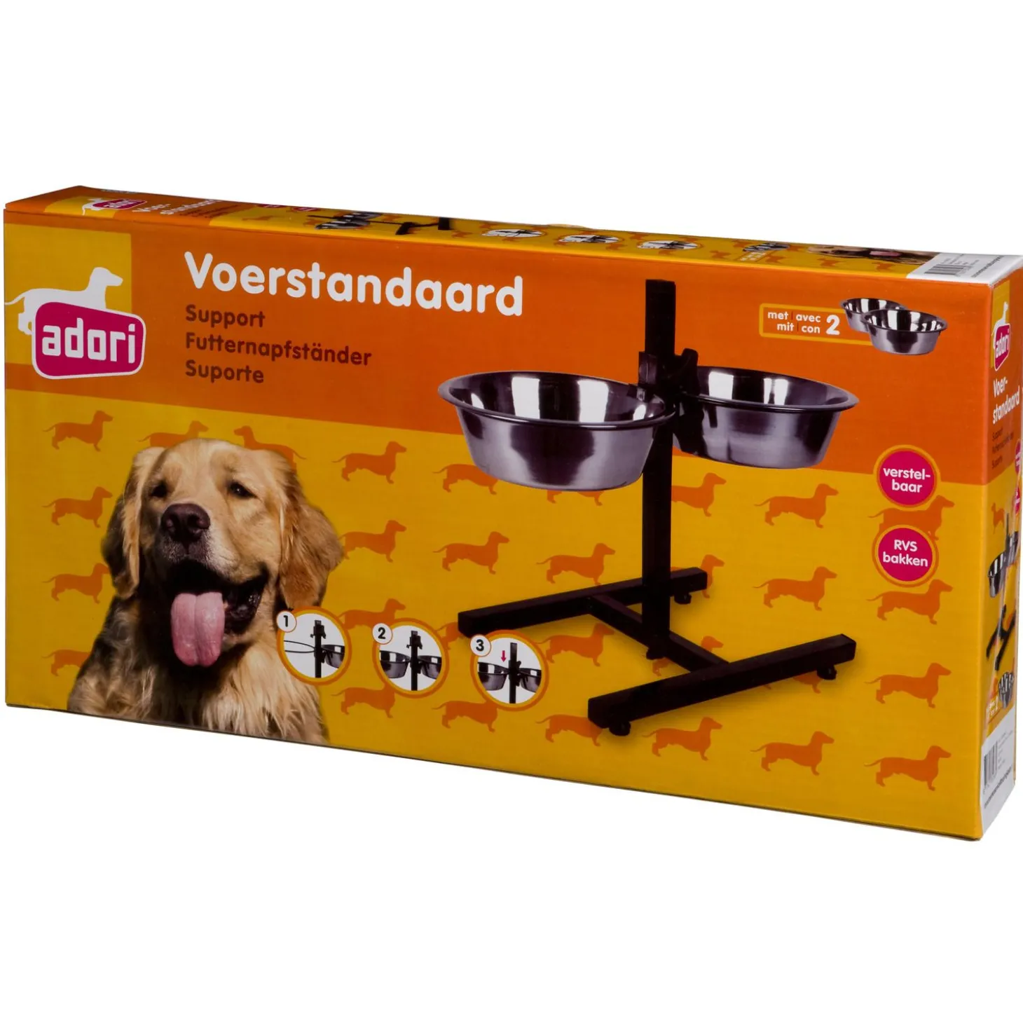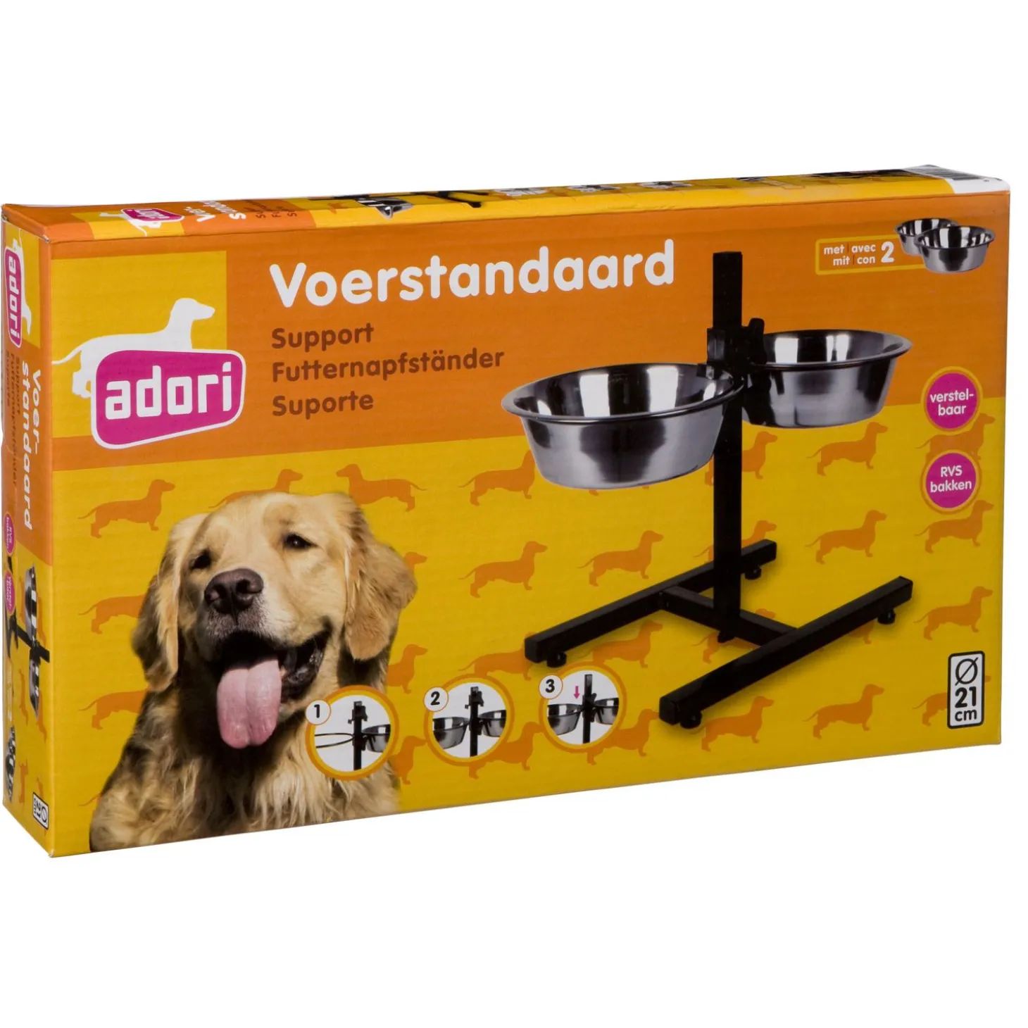 De bakken zijn gemaakt van RVS waardoor deze makkelijk zijn schoon te maken en in de vaatwasser kunnen. Ook trekken er geen bacteriën en of vieze geurtjes van de brokken of het natvoer in het materiaal. De standaard is verstelbaar zodat de bakken op de juiste hoogte worden ingesteld voor jouw hond. Ideaal voor honden die last hebben van hun nek of rug en niet te ver door kunnen buigen. Voor honden met nekklachten is het voerstandaard een uitkomst, ze hoeven namelijk minder diep te bukken om bij hun bak te komen. Hierdoor worden de spieren en gewrichten ontlast. Let op: zet de bakken bij gezonde honden niet té hoog. Een gezonde hond kan prima bukken voor zijn voer of water. Een te hoge bak kan de kans op een maagkanteling vergroten.