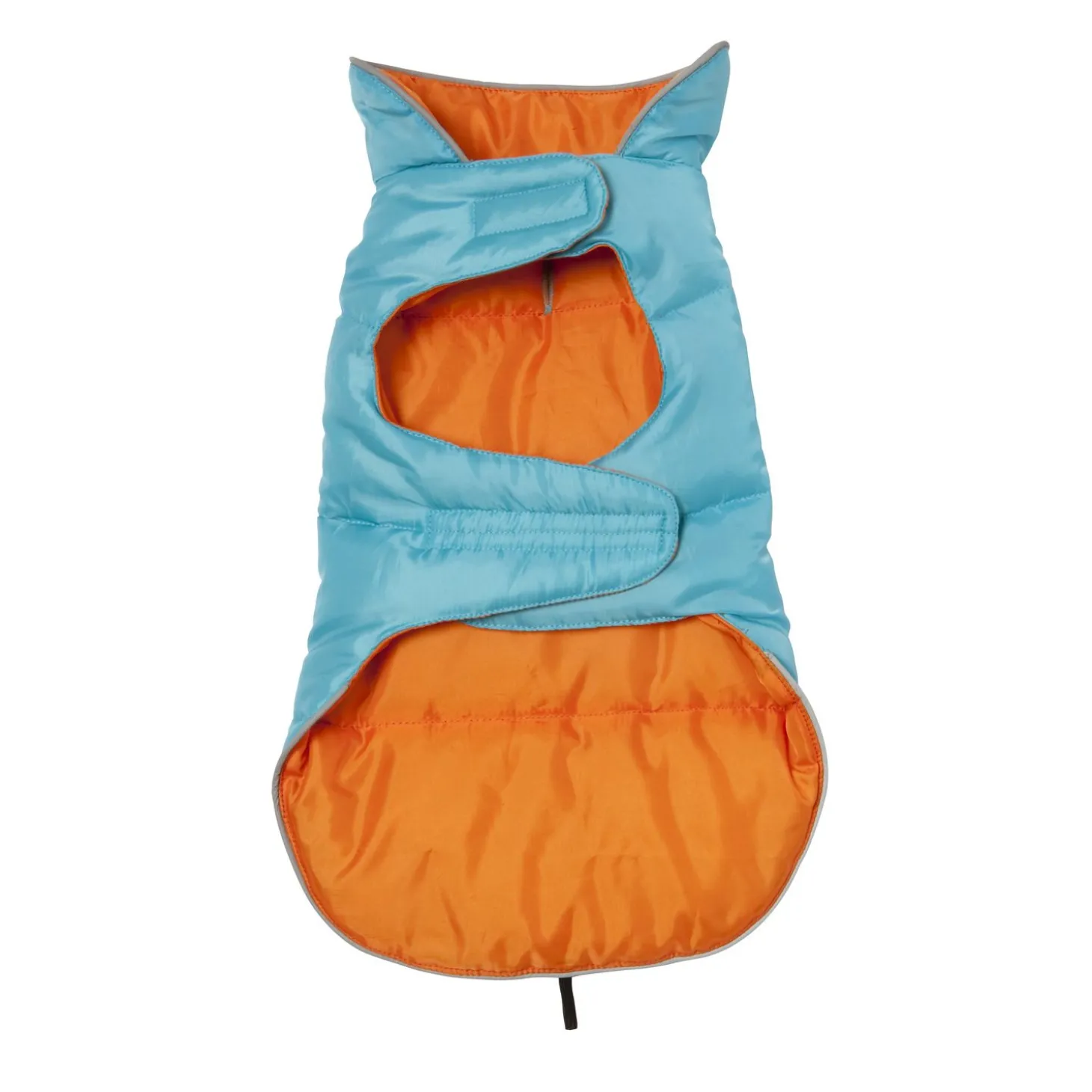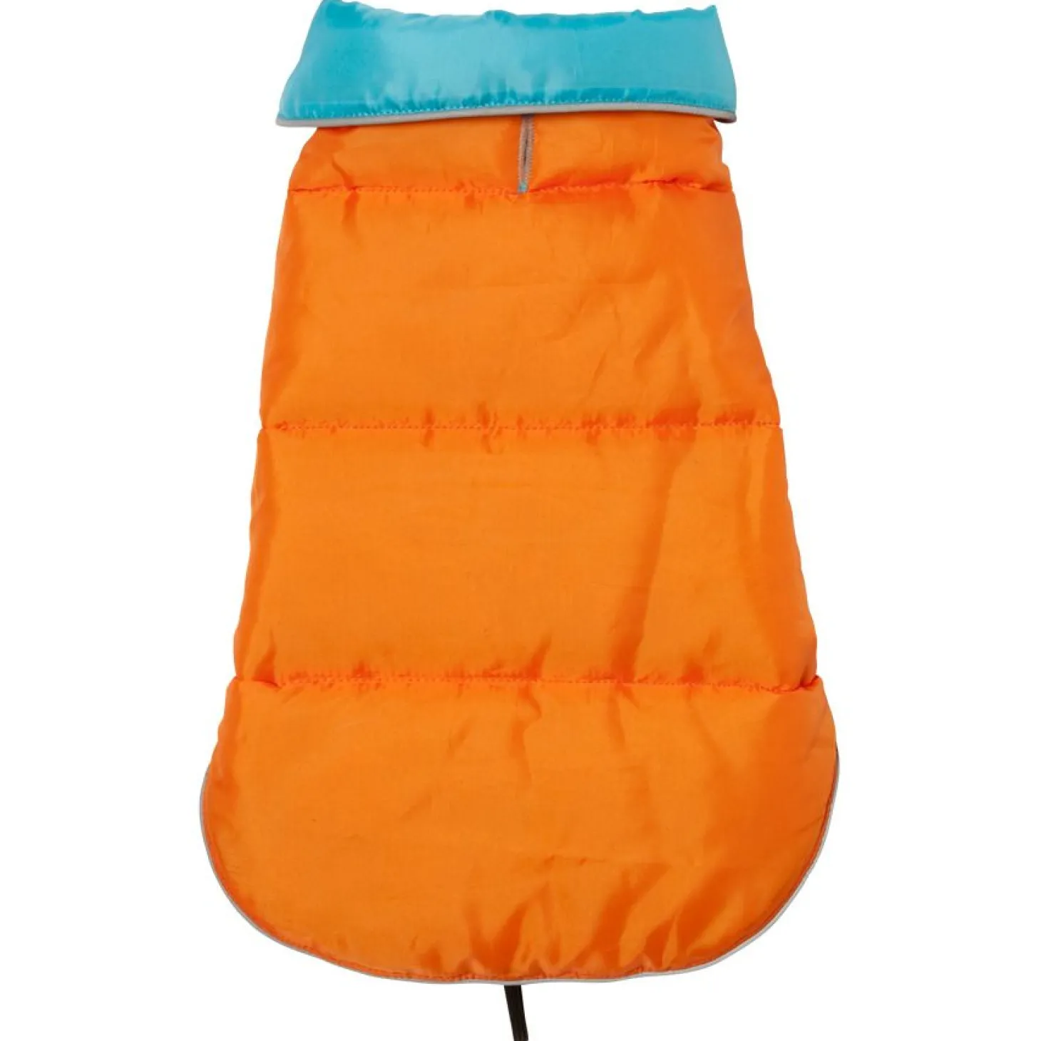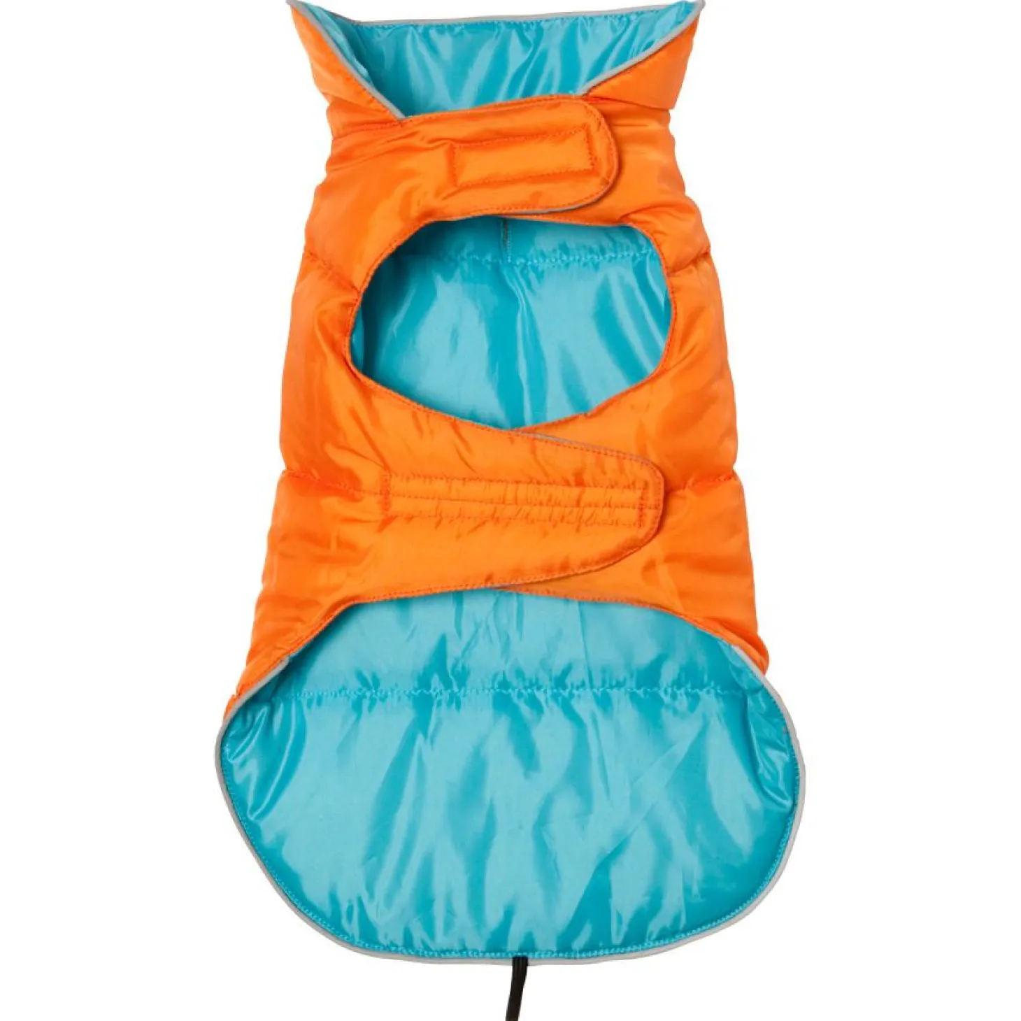 De Hondenjas is blauw en oranje van kleur, een vrolijke combinatie. Het jasje is omkeerbaar en je kan dus altijd wisselen van look. Beide zijdes zijn waterafstotend waardoor je hond ook in de regen lekker warm kan blijven. Het jasje is makkelijk aan te trekken en zit comfortabel voor je hond. Doordat je de hondenjas kan verstellen, is deze erg flexibel en zit hij altijd goed. De Hondenjas Omkeerbaar is beschikbaar in zes verschillende maten, waarbij wordt uitgegaan van de ruglengte: