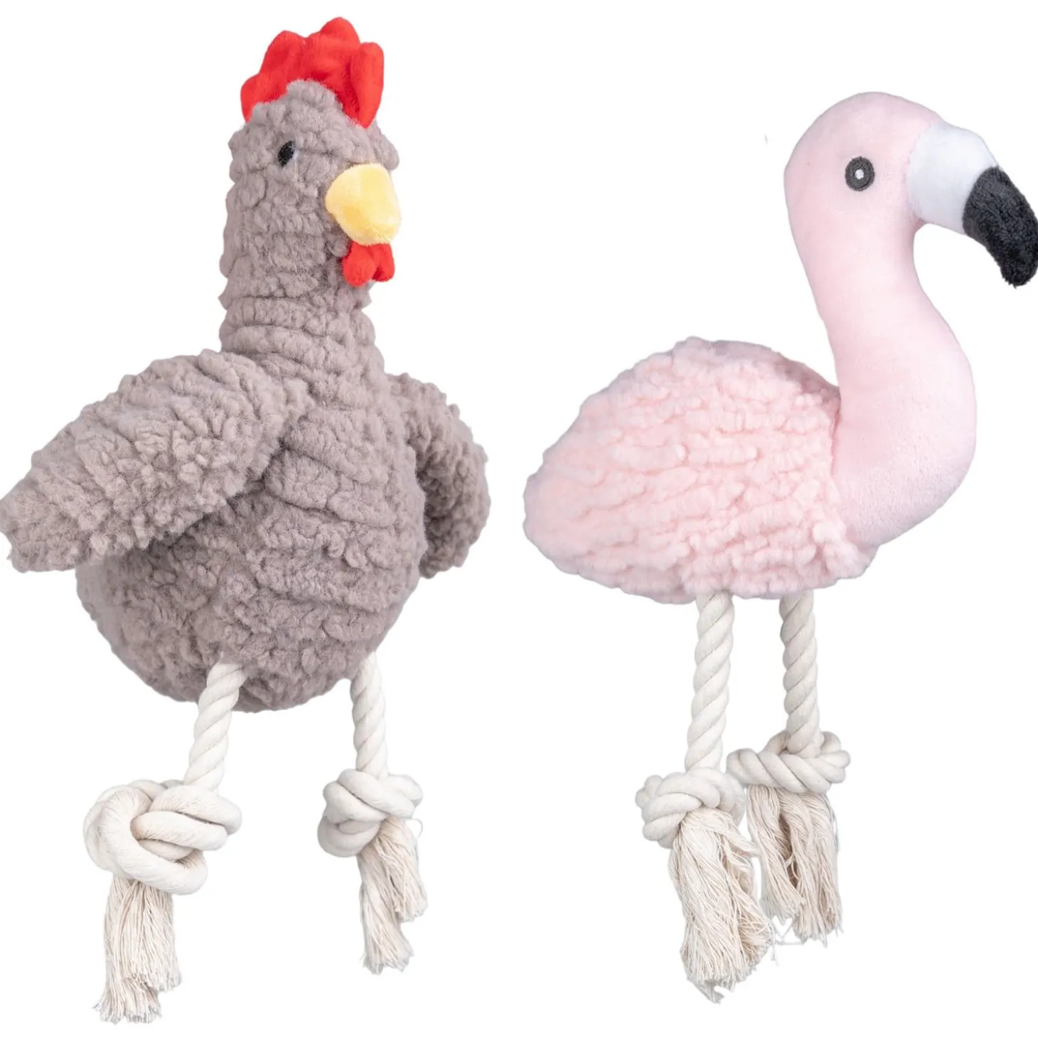 - Een speelse kip of een elegante flamingo, zodat je hond altijd een speeltje heeft dat bij zijn voorkeuren past.