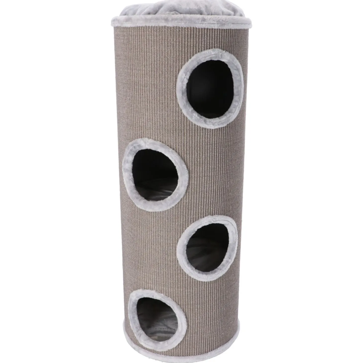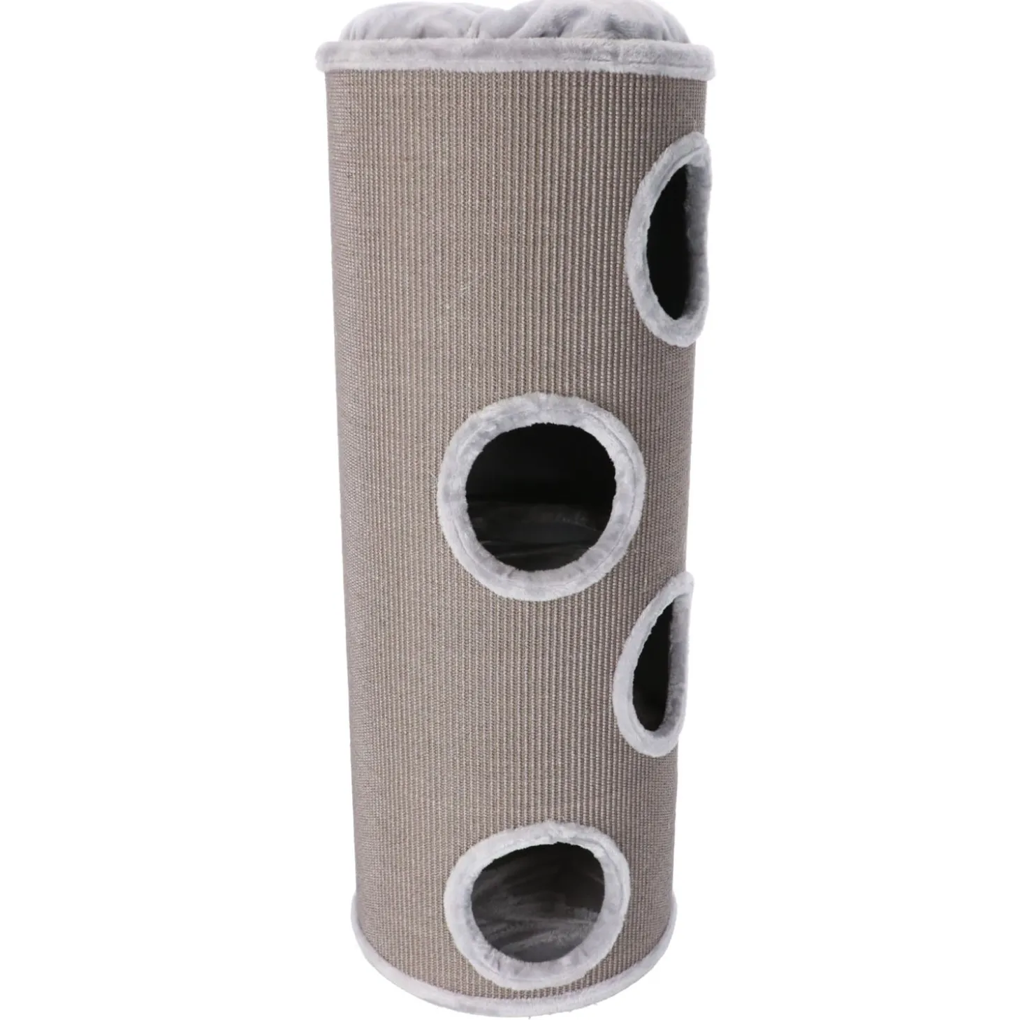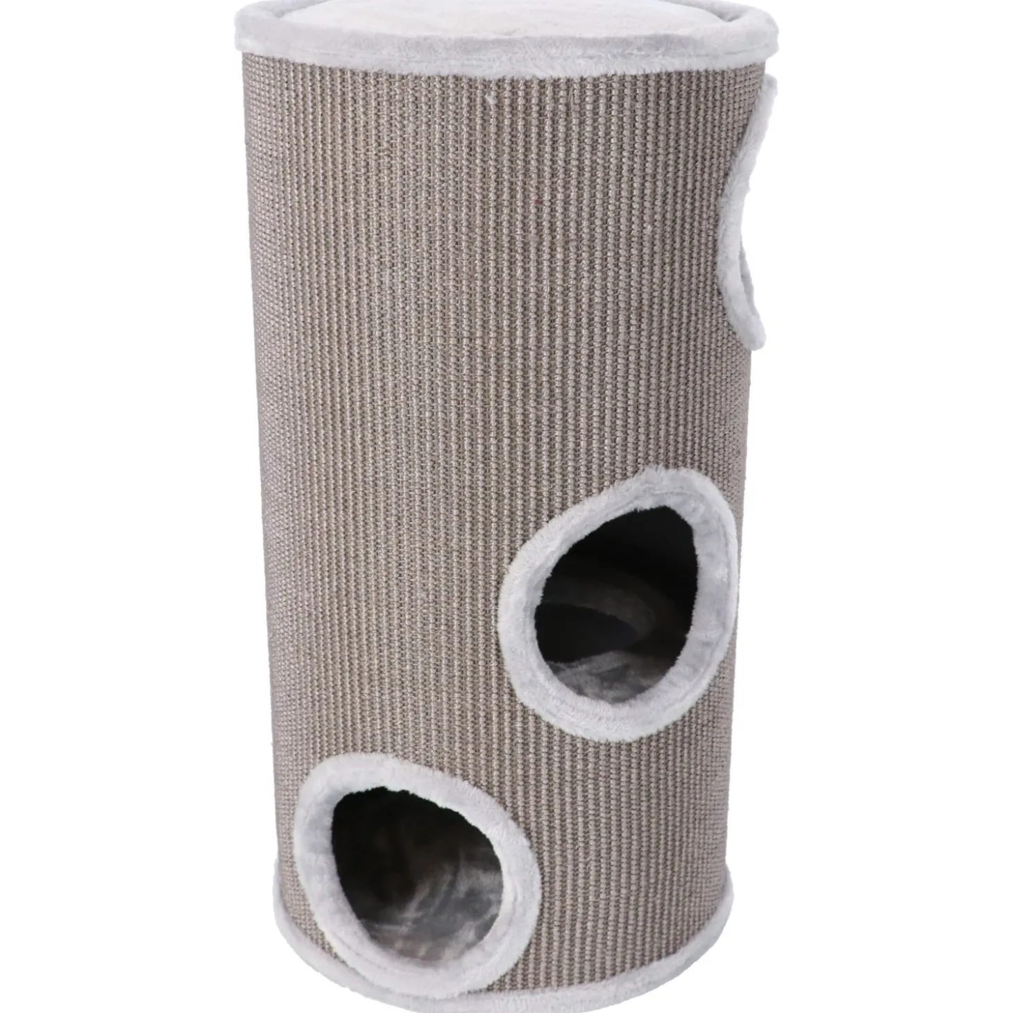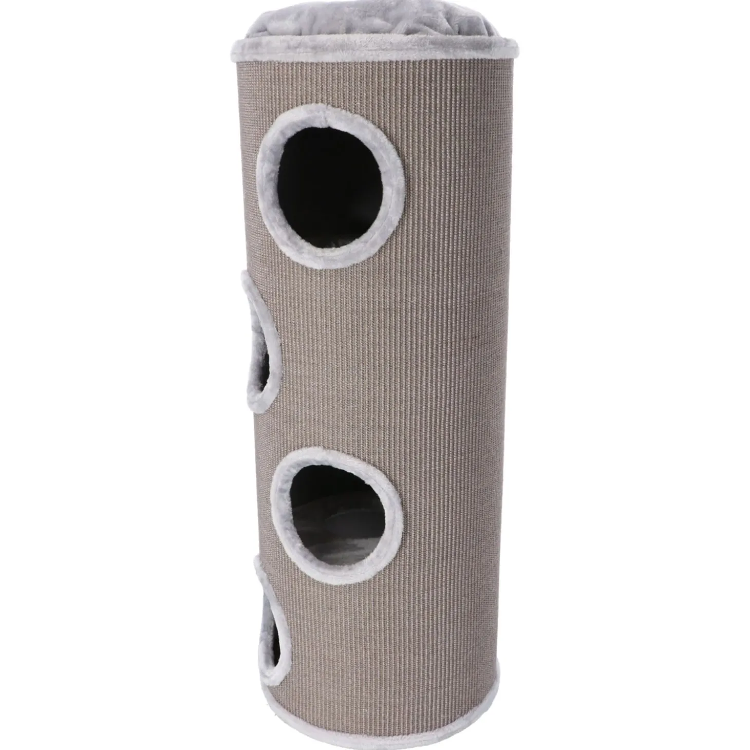 De Krabton Nala van Adori heeft een afmeting van 35 x 35 x 70 cm en is een strakke toevoeging aan je interieur. Deze krabton bevat drie openingen waar je kat in kan kruipen. Binnenin vind je kat twee heerlijke slaapplekken en een gat om door de krabton te navigeren. De bovenkant bevat een zacht pluche oppervlak waar je kat op kan slapen of rusten. De buitenkant van de krabton is bekleed met sisaltouw om aan te krabben. Zo biedt deze krabton oneindig veel krabplezier voor je kat! De Nala krabton is grijs van kleur.