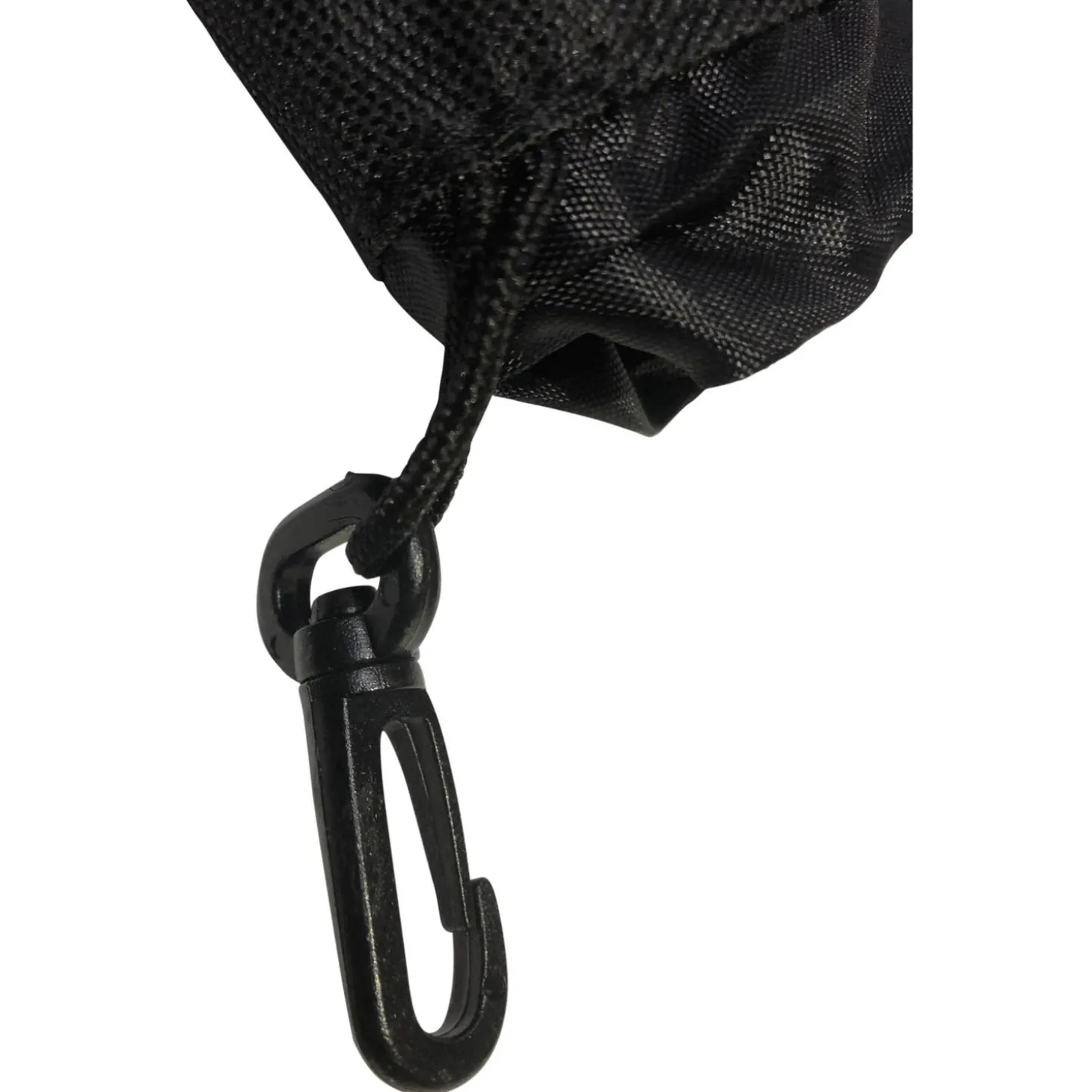 De Snackbag Met Karabijnhaak heeft een afmeting van 9 x 7 cm en is zwart van kleur.