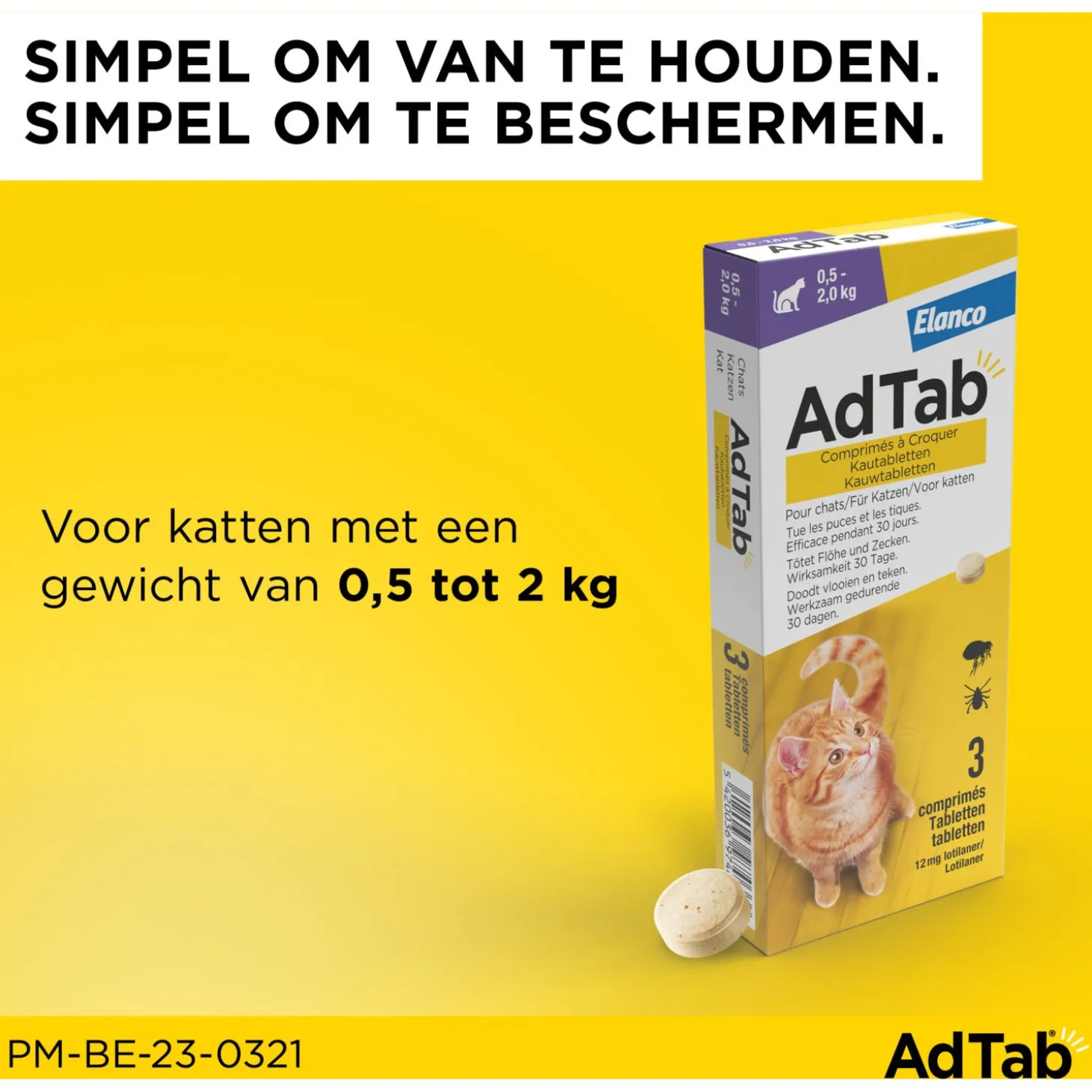 - Geschikt voor katten en kittens:AdTabTM is geschikt voor katten en kittens van alle leeftijden en gewichten.