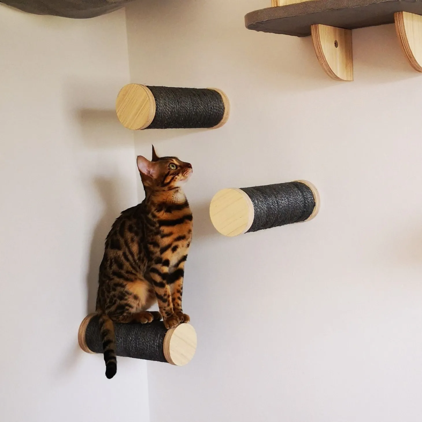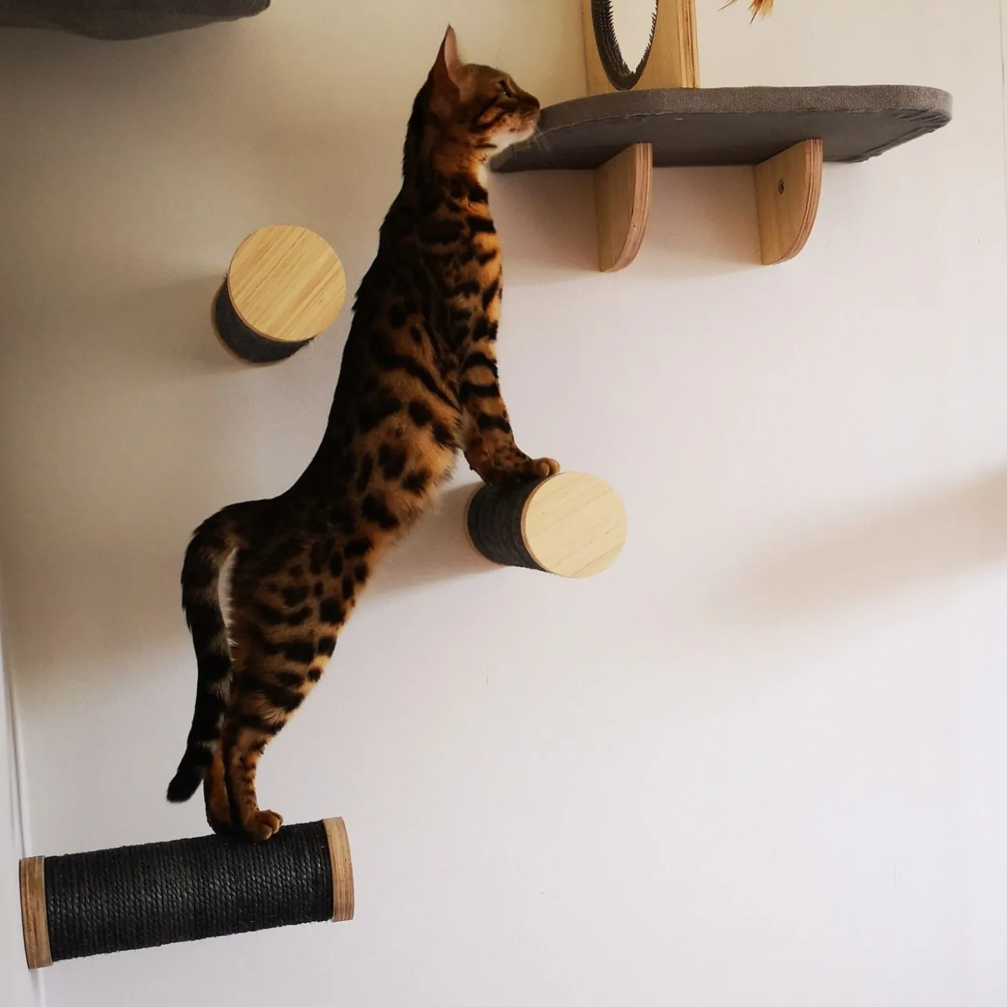 Als je meerdere katten hebt, is het van belang dat ze meerdere mogelijkheden hebben om zich door het huis te manoeuvreren. Dus niet alleen via de vloer, maar ook via de muur. Zo kan je ene kat op de grond lopen en neemt je andere kat de ‘andere weg’ via de muur.