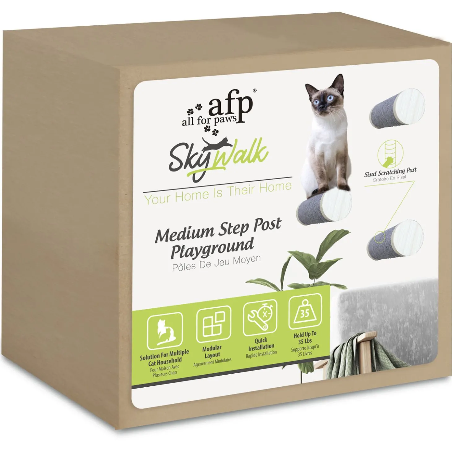 Een gelukkige kat, is een kat met veel verrijking in huis. Natuurlijk mag een krabpaal niet ontbreken, maar je kan het leefgebied van je kat nóg verder uitbreiden met de Skywalk producten voor aan de muur van All For Paws, zoals deze Medium Step Post Playground 3-Pack.