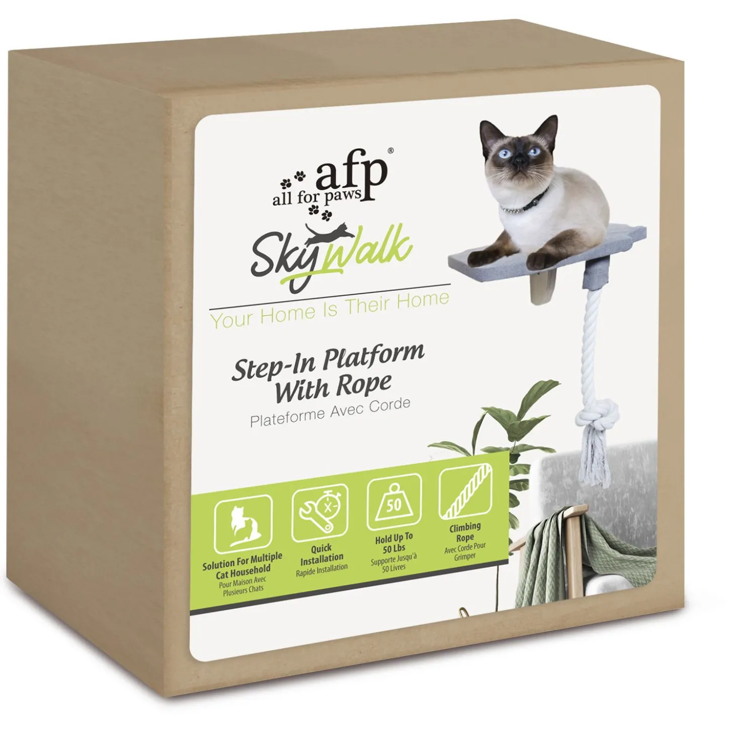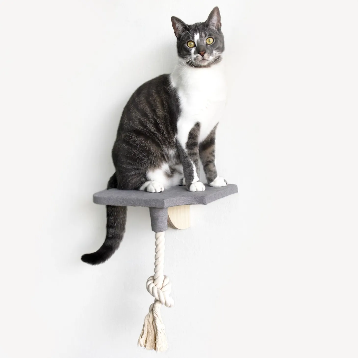 Het Step-In Platform is een leuke speelplank voor je kat. De plank is bedekt met een fijne stof om op te liggen. Aan de onderkant is een katoenen touw vastgemaakt waar je kat mee kan spelen. Met het Step-In Platform heeft je kat een fijne hoge muurplank vanwaar ze de hele huiskamer kan overzien of vanwaar ze lekker door het raam naar buiten kan kijken. Wat wil een kat nog meer!
