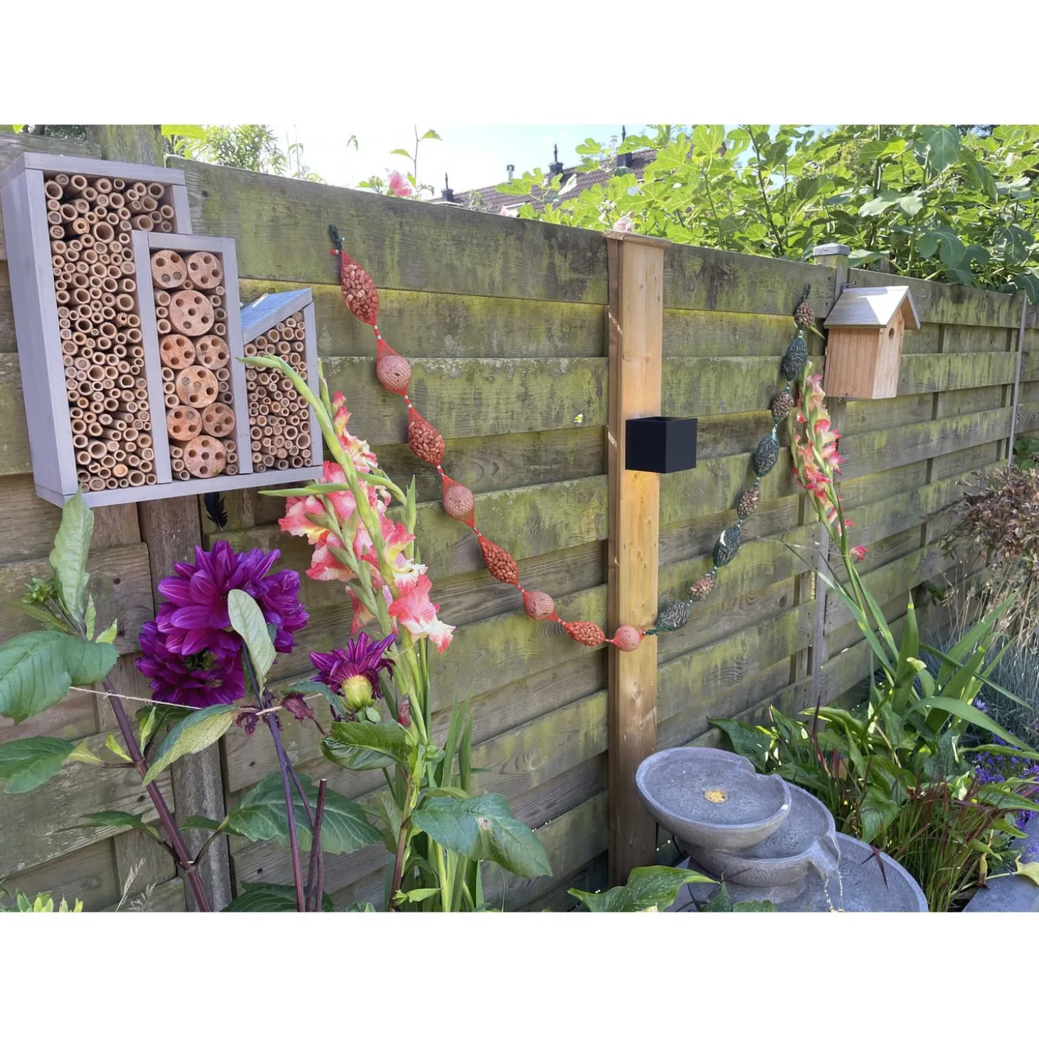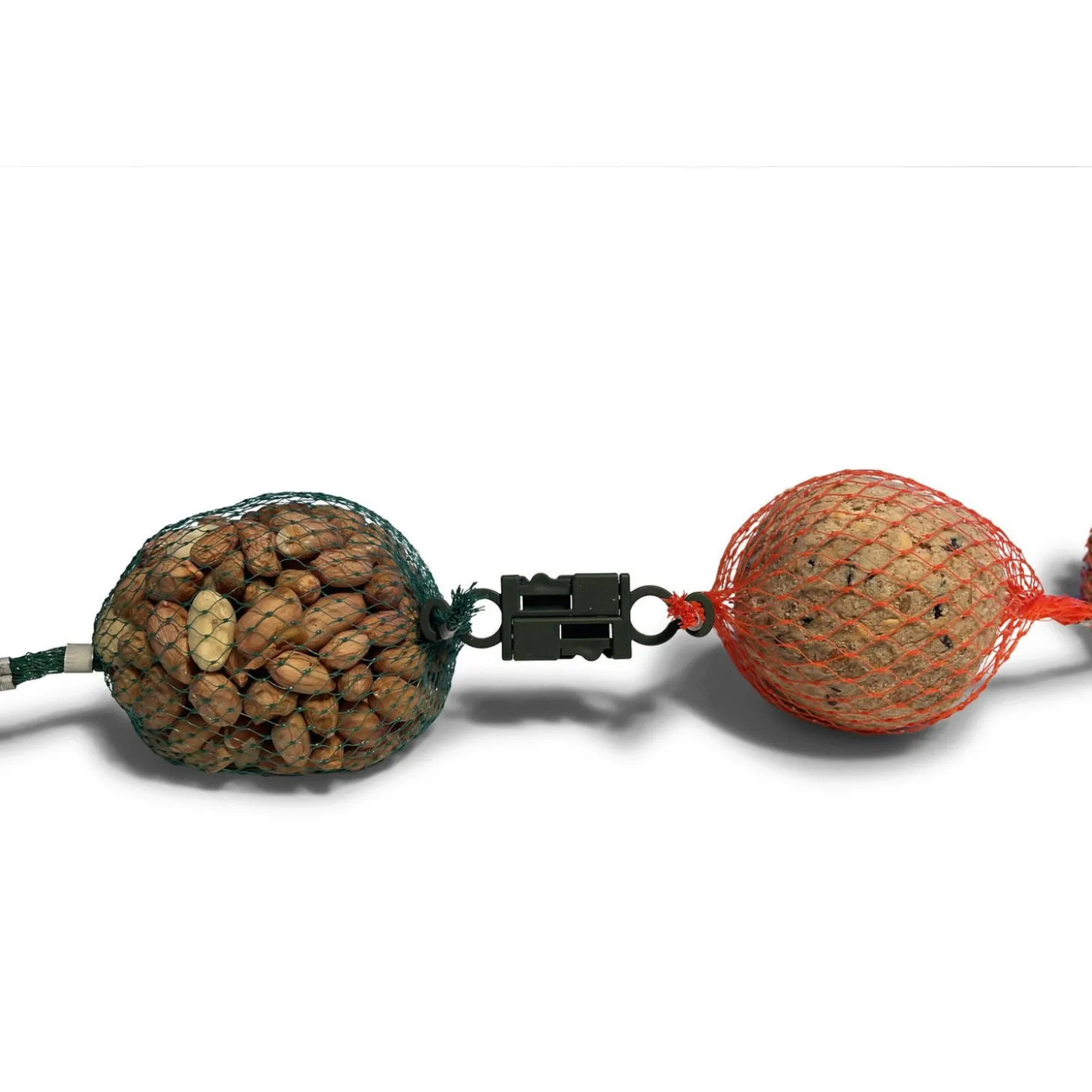 Vogels zijn groot fan van een gevarieerde tuin met inheemse planten en struiken, bessen, insecten, een lapje gras en liefst niet al te netjes. Daar vinden ze volop voedsel. Maar ze kunnen niet altijd eten vinden in de steeds drukbevolktere dorpen en steden. Met de Klikslinger Pinda-Zonnebloempit van AllBirds&Co kan je de vogels het hele jaar door bijvoeren. Dankzij de handige kliksluiting is de slinger eenvoudig om een tak heen te hangen of uit te breiden met een andere slinger.