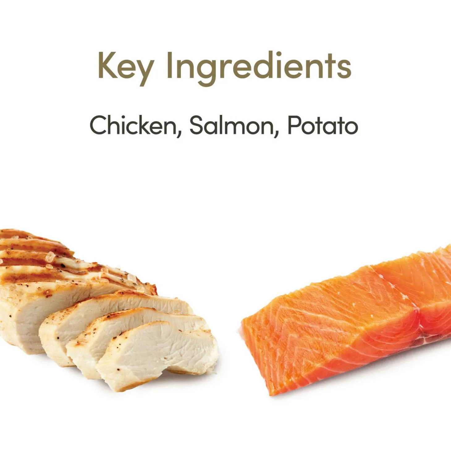 Gedroogde Kip (50%), gedroogde Zalm (13%) kippen gehakt (13%), aardappel , zalm 6 % , bietenpulp , biergist , zalm olie (1% bron van Omega 3) , kippen boullion (1 %), vissen boullion (0,5%), vitaminen en mineralen, gedroogd ei, Cellulose vezel (0,03 %) natriumchloride , calciumcarbonaat , zeewier / kelp , bosbessen, DL- methionine, kaliumchloride, Yucca Extract, Citrus Extract , Rosemary Extract