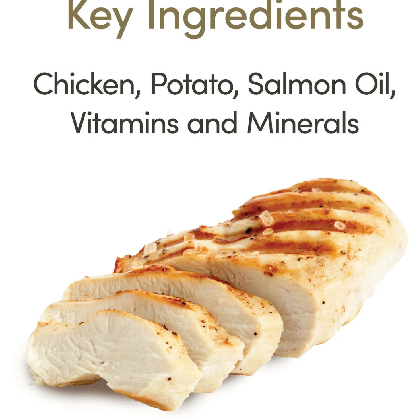 Gedroogde kip (65%), kippengehakt (17%), aardappel, biergist, bietenpulp, kippen boullion (1%), zalmolie, vitaminen en mineralen, gedroogd ei, cellulose vezel (0,03%), natriumchloride, calciumcarbonaat, zeewier / kelp, bosbessen, DL-methionine, kaliumchloride, yucca extract, citrus extract, rozemarijn extract.