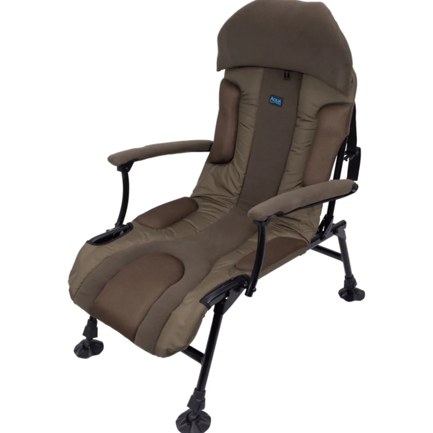 De Aqua Longback Chair ontworpen met comfort en steun in gedachten, heeft een verscheidenheid aan ergonomische, maar luxe functies, perfect voor de behoefte van de moderne karpervissser. Optimale stabiliteit voor de stoel kan worden bereikt met een viertal one-touch verlengbare poten, die kunnen worden afgesteld met ons unieke, gepatenteerde pootmechanisme, samen met roterende moddervoeten, perfect voor gebruik op zacht terrein. Daarnaast zorgt de toevoeging van de aanpasbare, schuivende hoofdsteun, naast een unieke gebogen steun, voor comfort op maat voor je individuele behoeften, en zorgt dat je lichaam maximaal ontspant. Met 4,75 kg is deze stoel een lichtgewicht, en zorgt voor extra mobiliteit tijdens het vissen vanwege de lichtere belasting op je kar. Deze veelzijdige stoel biedt een premium oplossing voor zowel functionaliteit als comfort, en is een voorbeeld van de status van de Aqua Longback Chair als de ideale stoel voor aan de oever.