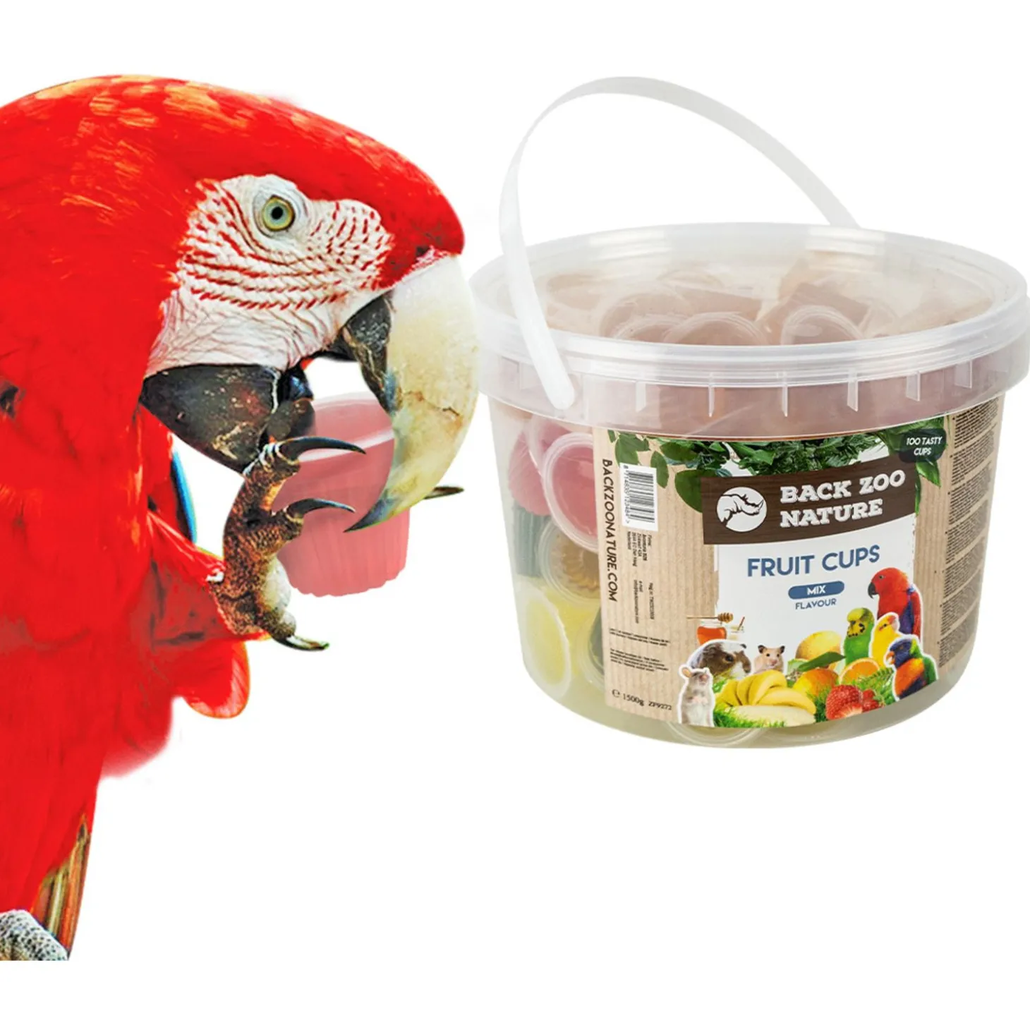 | Aanbeveling | Maximaal 1 à 2 kuipjes per dag afhankelijk van de grootte en soort. Haal lege cups uit het verblijf of vul deze na met andere lekkernijen. |