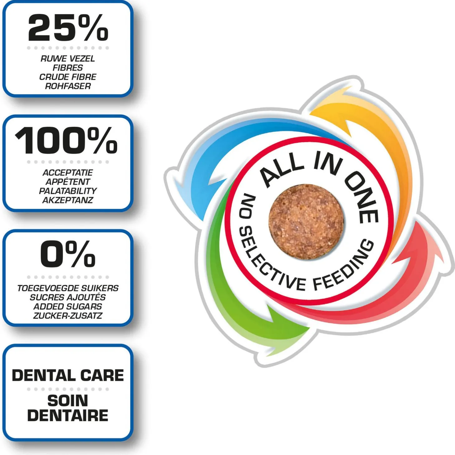 Dat de tanden van konijnen de rest van hun leven door groeien? Door de hardere brok slijten de tanden van het konijn op een natuurlijke wijze.