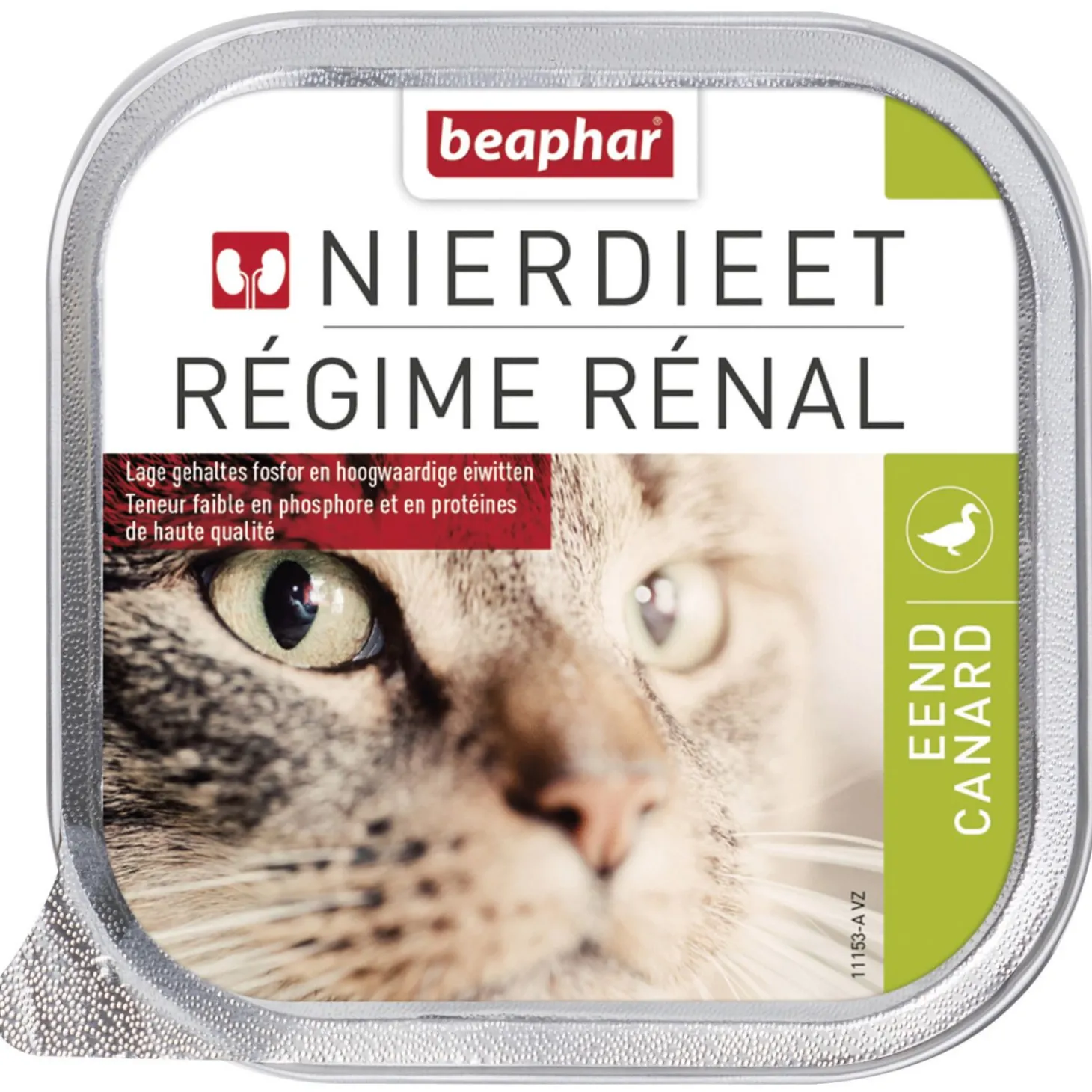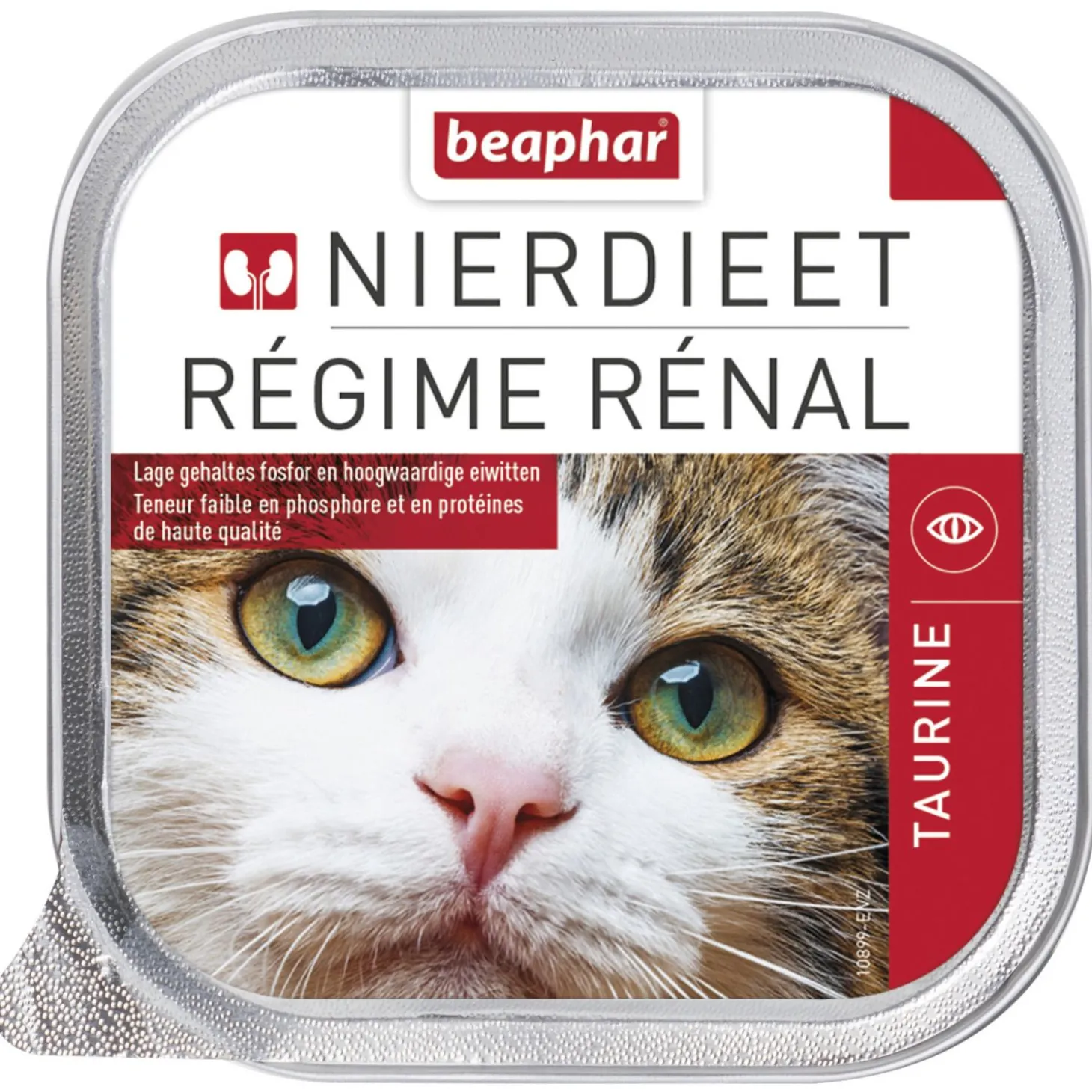 | Aanbeveling | Een volwassen kat (3-4 kg) neemt afhankelijk van lichaamsgewicht en activiteit 200 gram (2 kuipjes) à 300 gram (3 kuipjes) dieetvoer op.Aanbeveling: verdeel de dagelijkse hoeveelheid over meerdere porties per dag. Er moet altijd drinkwater aanwezig zijn, ververs dit bij voorkeur dagelijks. Nadat u het product gedurende zes maanden aan uw kat hebt gegeven adviseren wij u een dierenarts te raadplegen over het vervolg van de behandeling. Als de voeding wordt aangeraden bij tijdelijke nierinsufficiëntie, is de aanbevolen gebruiksduur 2-4 weken. |