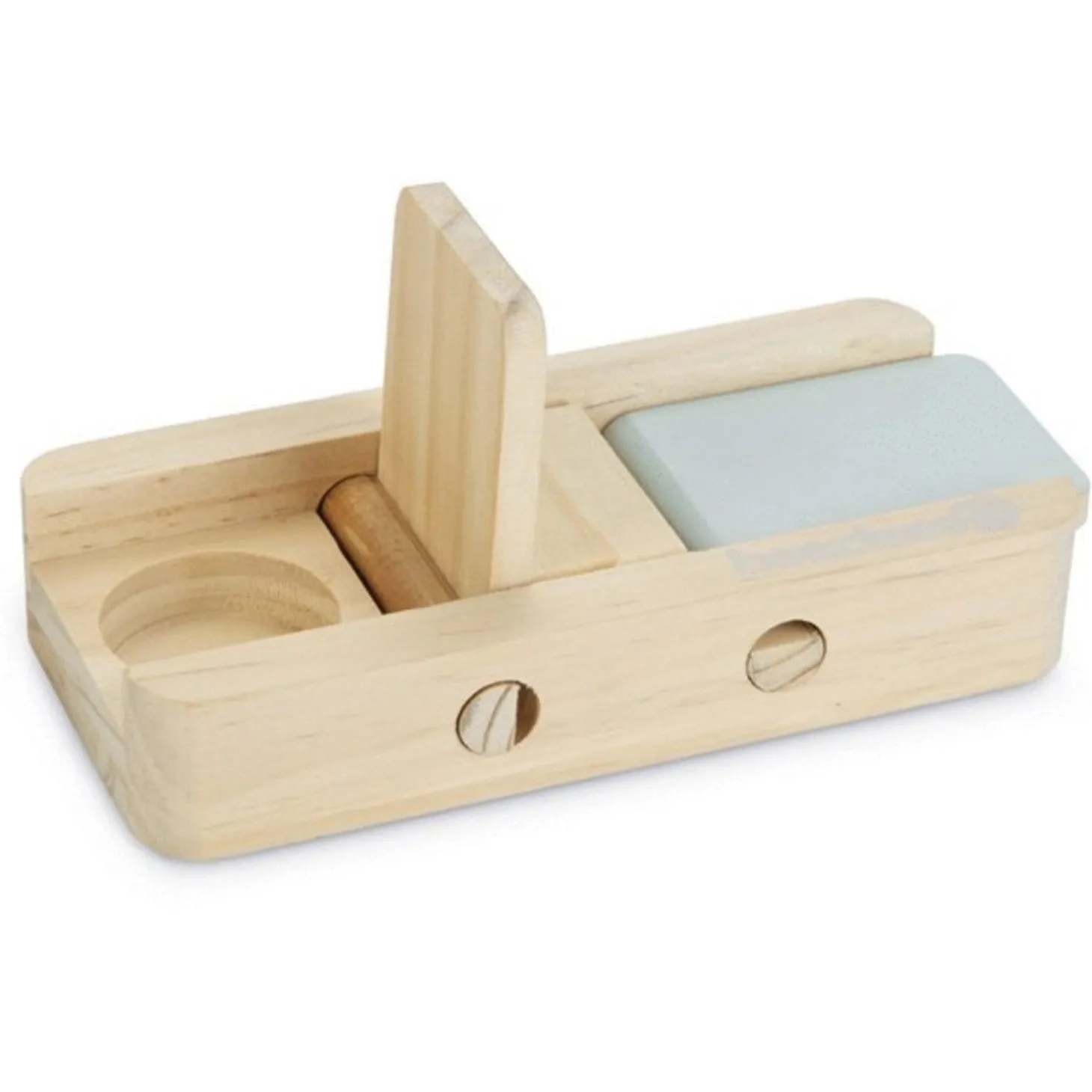 Dit houten intelligentiespeeltje heeft de kleur mintkleur en is 15 x 7 x 3 cm.