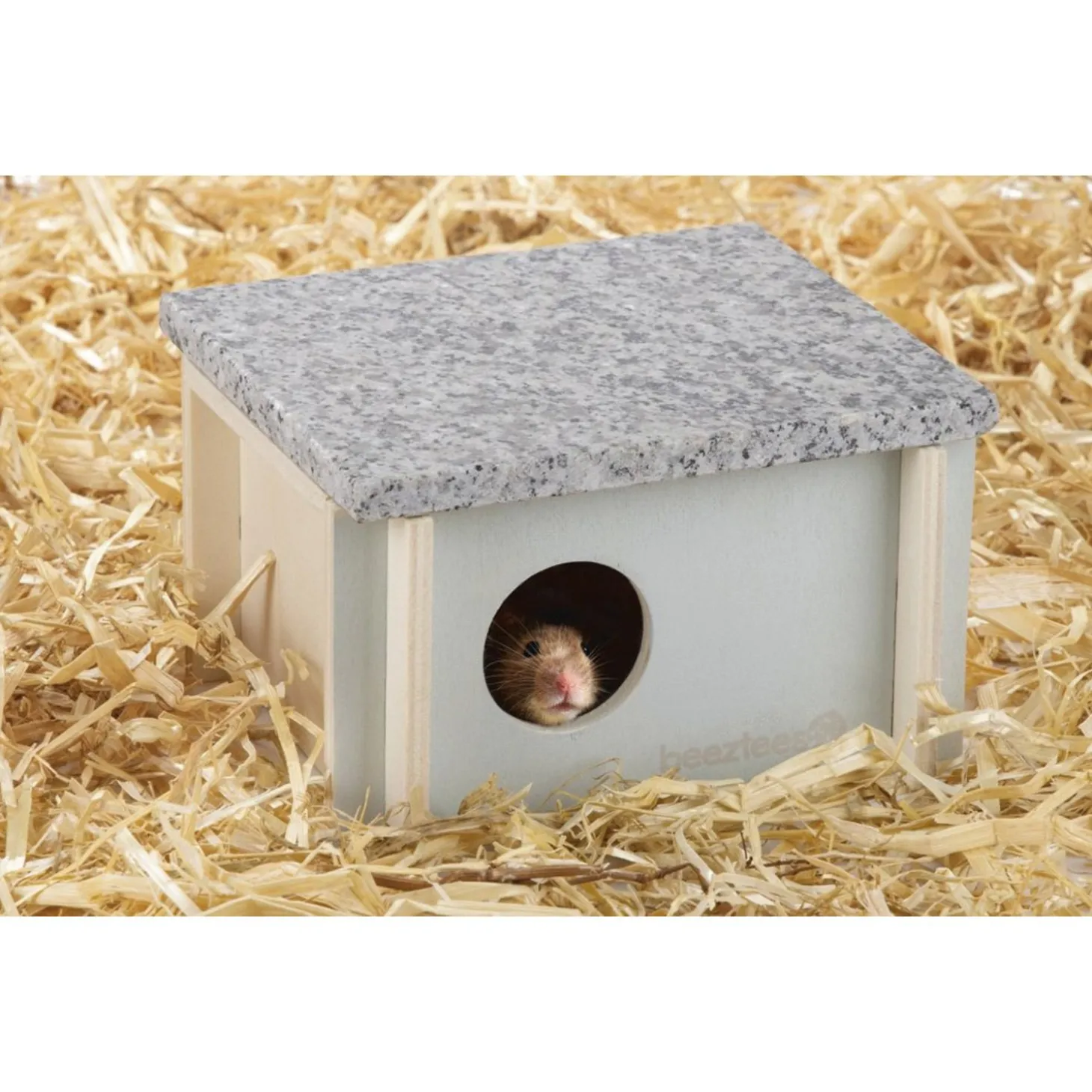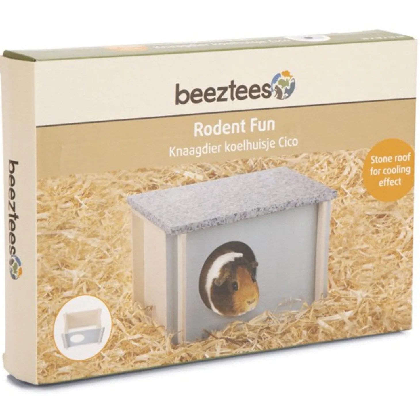 Ook knaagdieren kunnen soms wat verkoeling gebruiken tijdens warme zomerdagen! Het Beeztees Koelhuisje Cico helpt hier bij! Dit huisje, gemaakt van hout heeft namelijk een granieten koelsteen als dak. Deze steen heeft als eigenschap dat deze lekker koel blijft, waardoor ook het huisje aan de binnenkant lekker koel zal blijven.