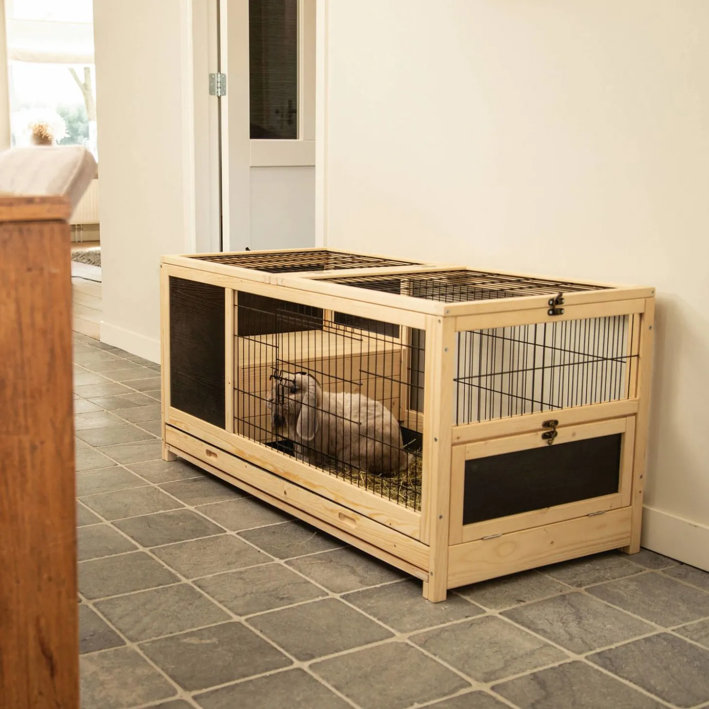 Wanneer jij jouw konijnen gezellig binnen houdt, wil je natuurlijk wel een mooi verblijf voor jouw konijnen! Beeztees Jez Konijnenkooi is een mooi binnenverblijf voor jouw konijnen.