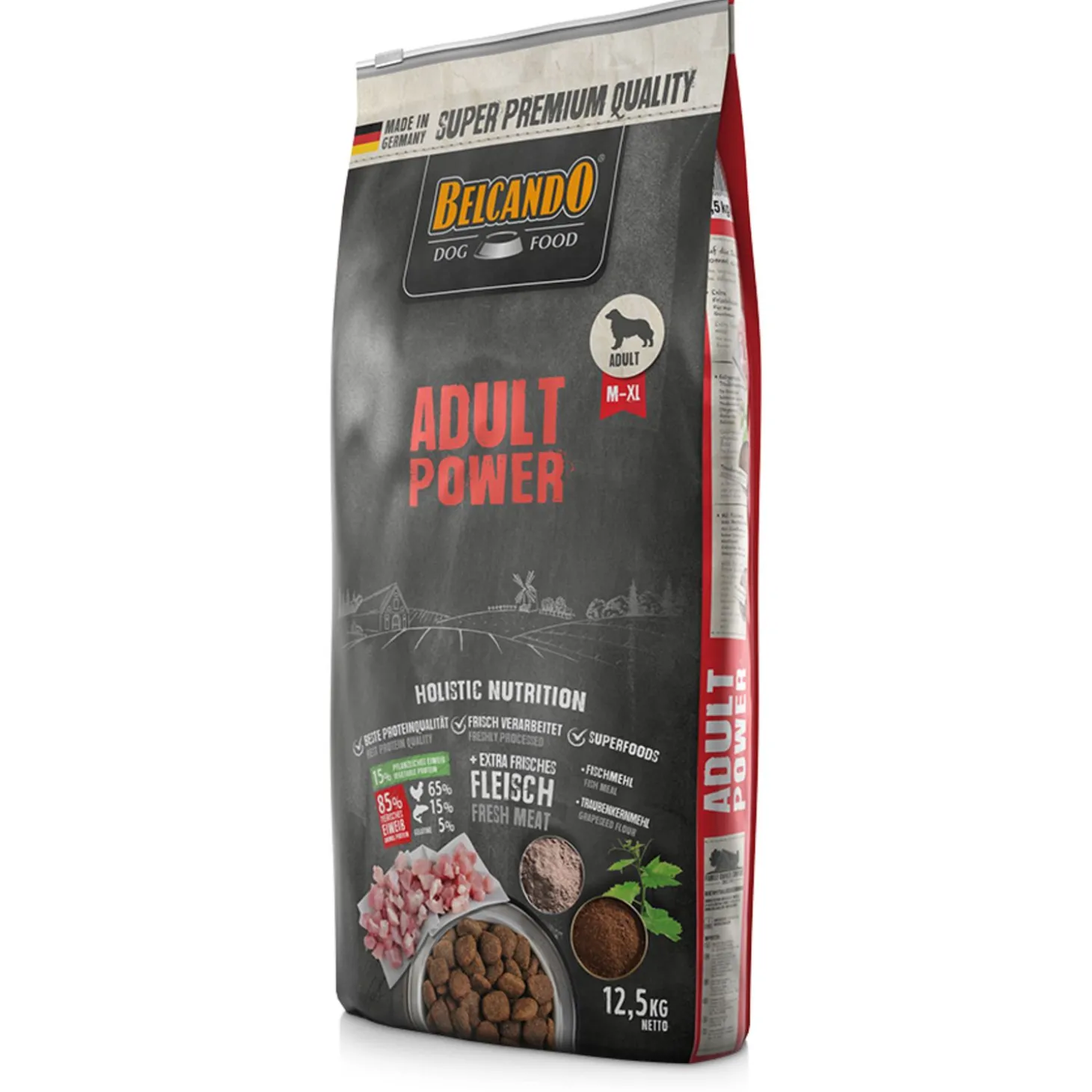 | Samenstelling | Vers pluimveevlees (30 %); gevogelte eiwit, asarm*¹ (21 %); maïs; rijst; vismeel van zeevis (6 %); pluimveevet; plantaardige olie (palm, kokos); ei*¹ (2,5 %); gelatine*² (2,5 %); druivenpitexpeller (2,5 %); brouwgist, geïnactiveerd*¹; gebroken johannesbrood*¹; gedroogde bietenpulp*³; chiazaad; pluimveelever*²; dicalciumfosfaat; natriumchloride; kaliumchloride; kruiden*¹ (brandnetelblad, gentiaanwortel, duizendguldenkruid, maretak, duizendblad, braambladeren); yucca schidigera *¹gedroogd *²gehydrolyseerd *³ontsuikerd |