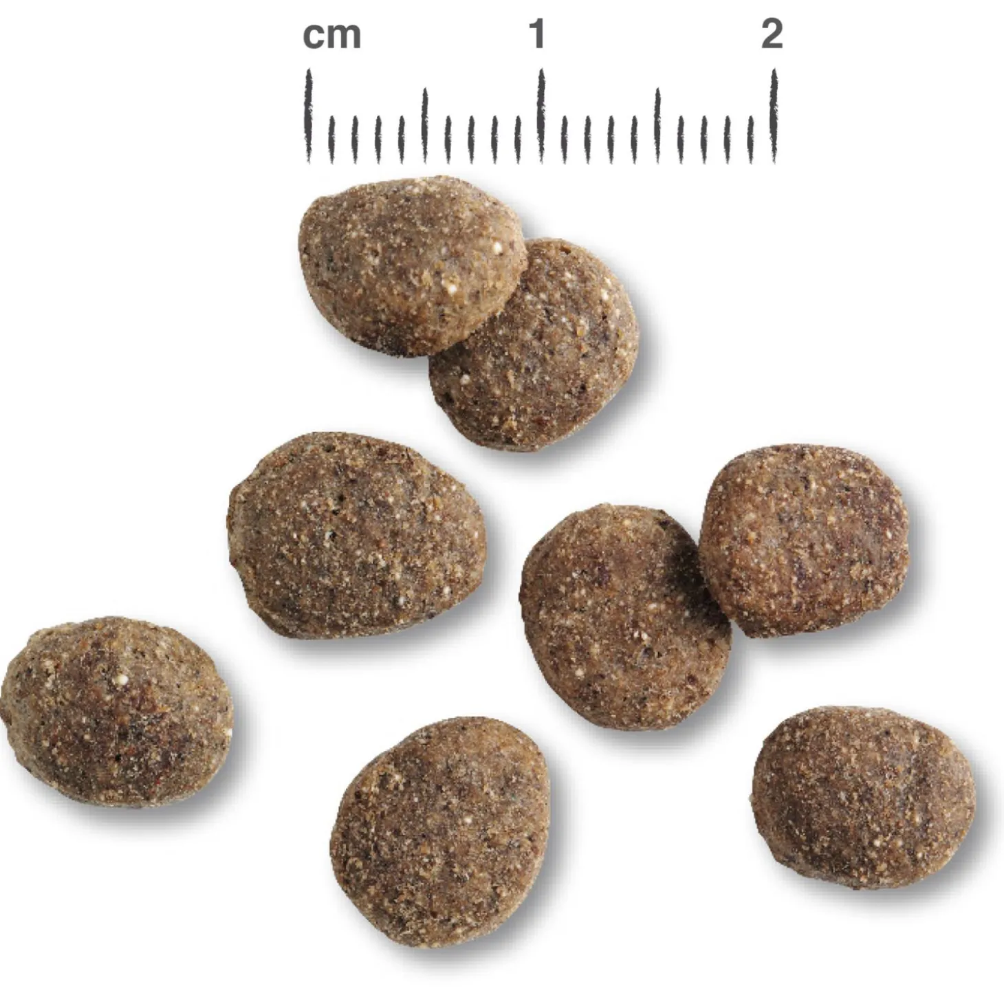 | Samenstelling | Vers pluimveevlees (40 %); amarant (19 %); aardappelzetmeel; erwtenbloem; pluimveelever*¹ (4,5 %); gevogelte eiwit, asarm*² (2,5 %); zeezoöplankton (Krill)*³ (2,5 %); gelatine*¹ (2,5 %); brouwgist, geïnactiveerd*² (2,5 %); druivenpitexpeller; gebroken johannesbrood*²; gedroogde bietenpulp*⁴; vismeel van zeevis (2 %); pluimveevet; chiazaad; calciumcarbonaat; dicalciumfosfaat; kaliumchloride; natriumchloride; kruiden*² (brandnetelblad, gentiaanwortel, duizendguldenkruid, maretak, duizendblad, braambladeren) (0,2 %); yucca schidigera *¹gehydrolyseerd *²gedroogd *³gemalen *⁴ontsuikerd |