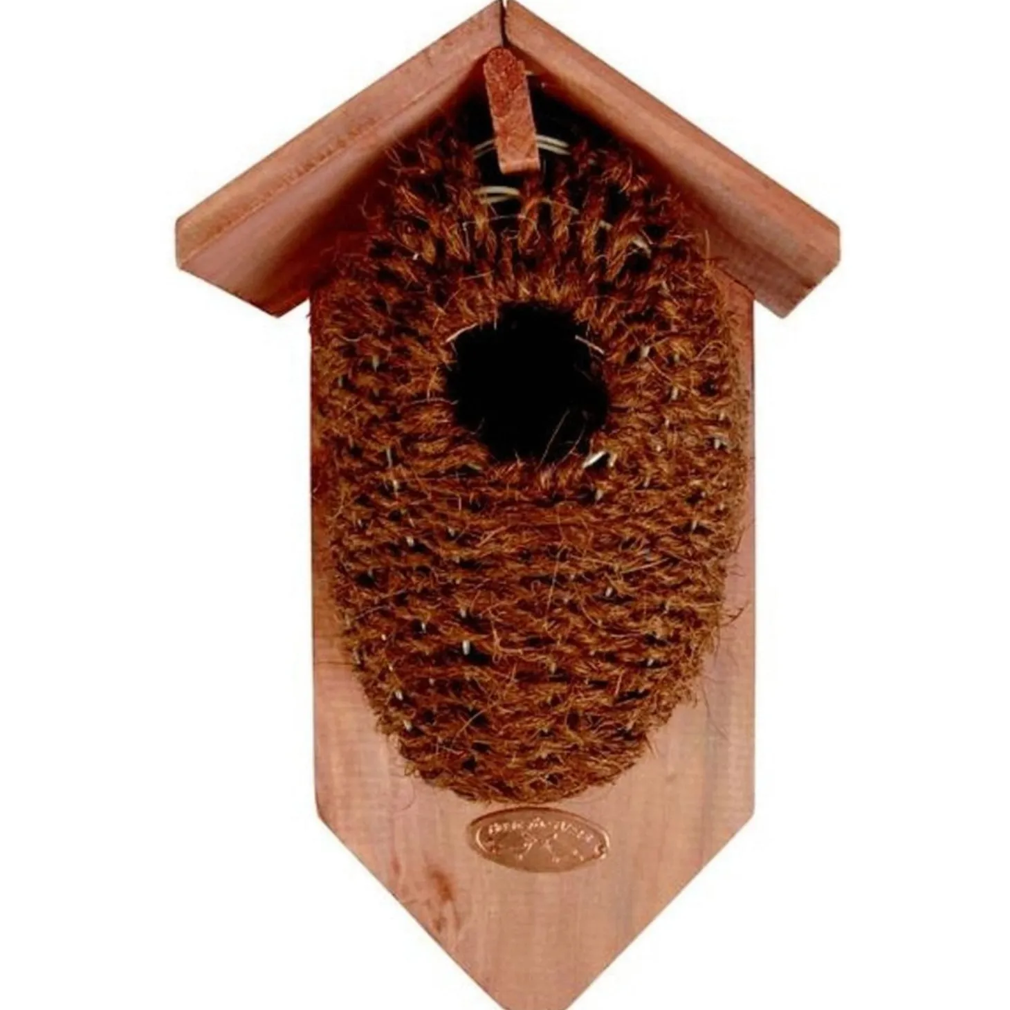 Deze klassieke nestbuidel met kokosharen biedt de Winterkoning een goede plek om in te broeden. Dit helpt deze populatie te behouden of weer terug te krijgen in een gebied.