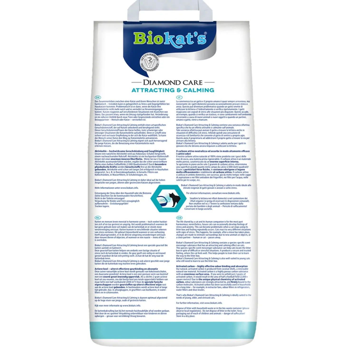 - Biokat’s Diamond Care Attracting & Calming bevat een soortspecifieke geurstof die katten aantrekt en kalmeert.