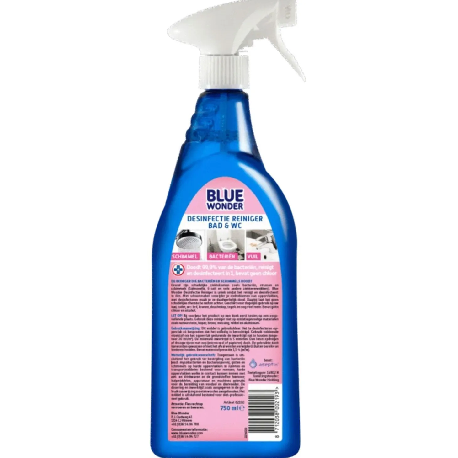 Schoonmaken was nog nooit zo effectief als met Blue Wonder Reiniger Spray Badkamer & WC. Deze spray doodt niet alleen 99,9% van de bacteriën, maar zal daarnaast ook reinigen en desinfecteren.