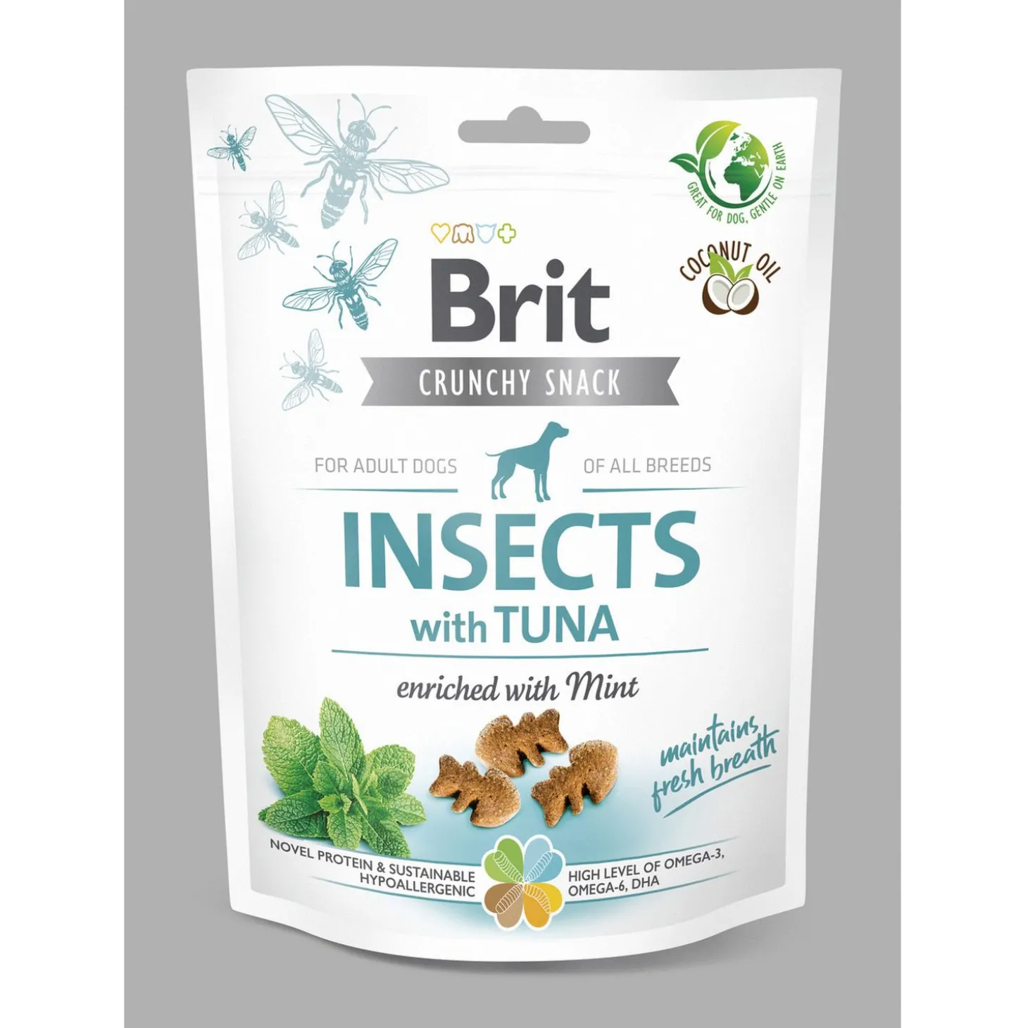 | Samenstelling | Composition: insect protein (26%), peas, rabbit protein (14%), potato starch, coconut oil, linseed (4%), dried apple pulp, hydrolyzed chicken liver, dried fennel (1%), dried algae (1%, Schizochytrium limacinum), rapeseed oil. |