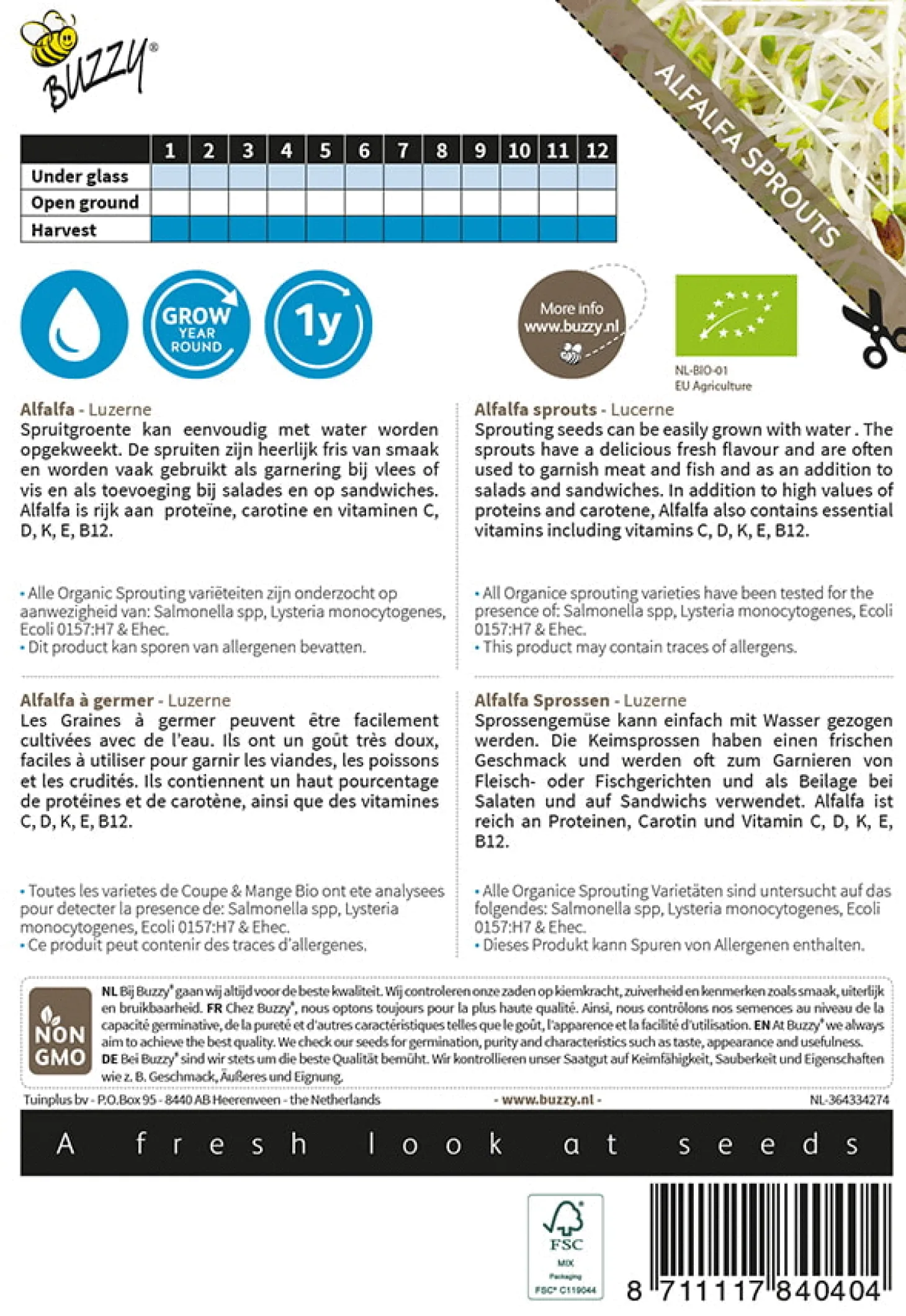 - Luzerne ontkiemde spruitgroente kan heel jaar gezaaid worden