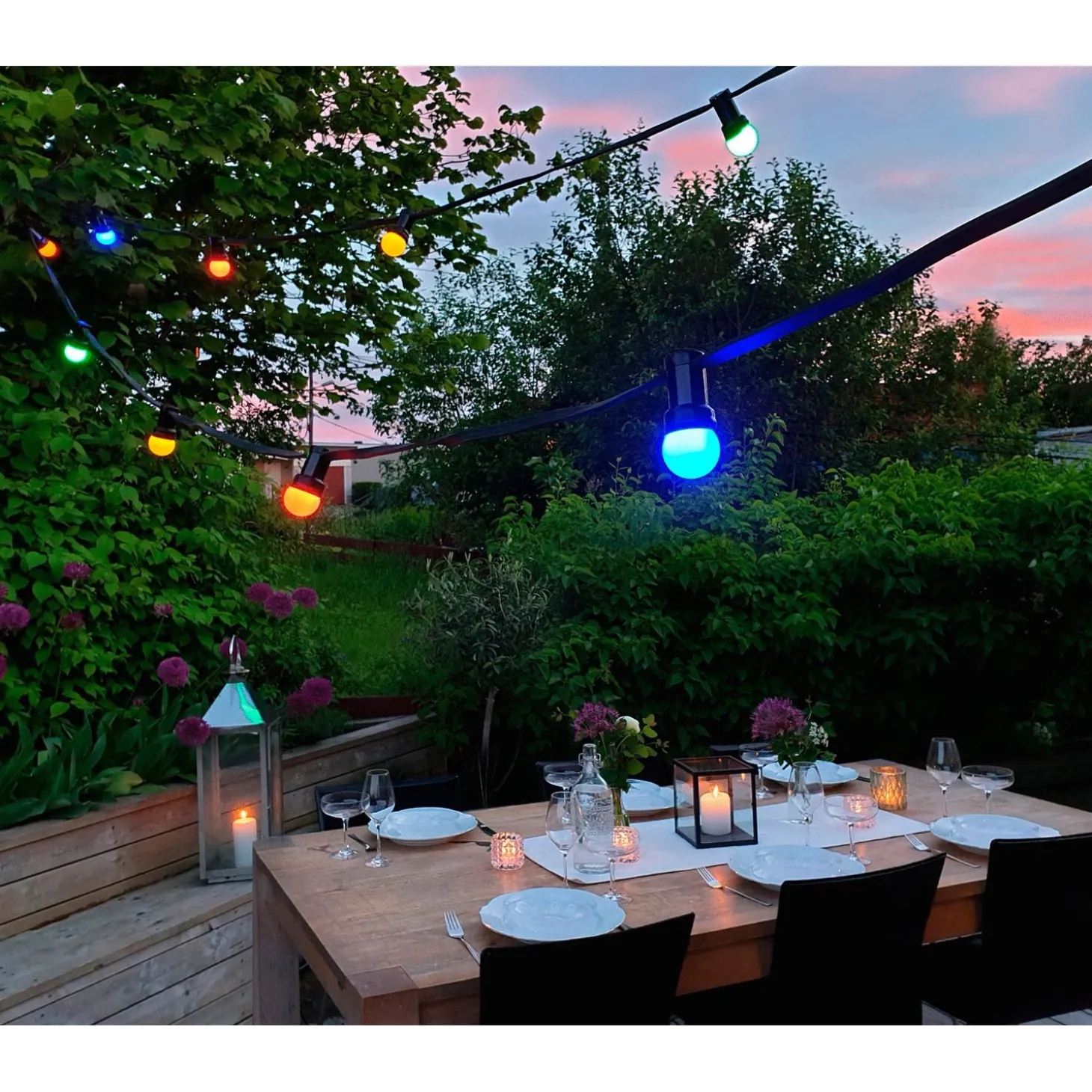Dit mooie Calex lichtsnoer zal prachtig stralen in bijvoorbeeld je balkon, tuin, of in je woonkamer. Het snoer heeft een totale lengte van 10 meter en tussen de lampjes zit steeds 80cm ruimte. De lampjes geven een warm licht af, wat jouw huis gelijk een stuk gezelliger maakt! De lampjes zijn spatwaterdicht (IP44) dus we raden aan ze buiten onder een overkapping te plaatsen. De lichtbronnen van het lichtsnoer zijn niet vervangbaar.