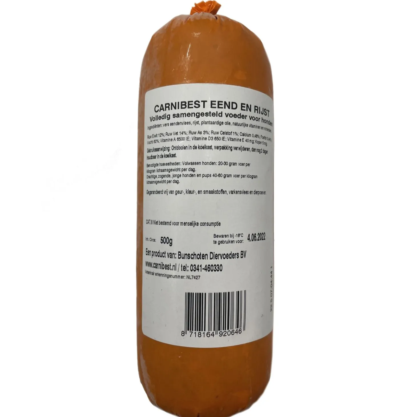 Carnibest Eend&Rijst biedt een uitstekende optie voor honden met voedselgevoeligheden en maakt het gemakkelijk om je huisdier te voorzien van een voedzame en smakelijke maaltijd.