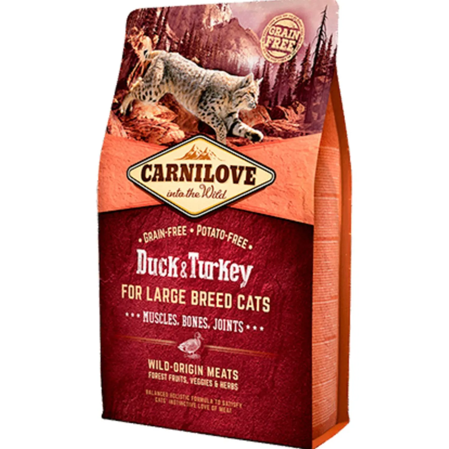 Carnilove Eend & Kalkoen Large Breed zijn graanvrije kattenbrokken. Carnilove Large Breed Cat is een gezonde kattenbrok speciaal afgestemd op de voedingsbehoefte van grote katten en is samengesteld voor gezonde spieren, botten en gewrichten.