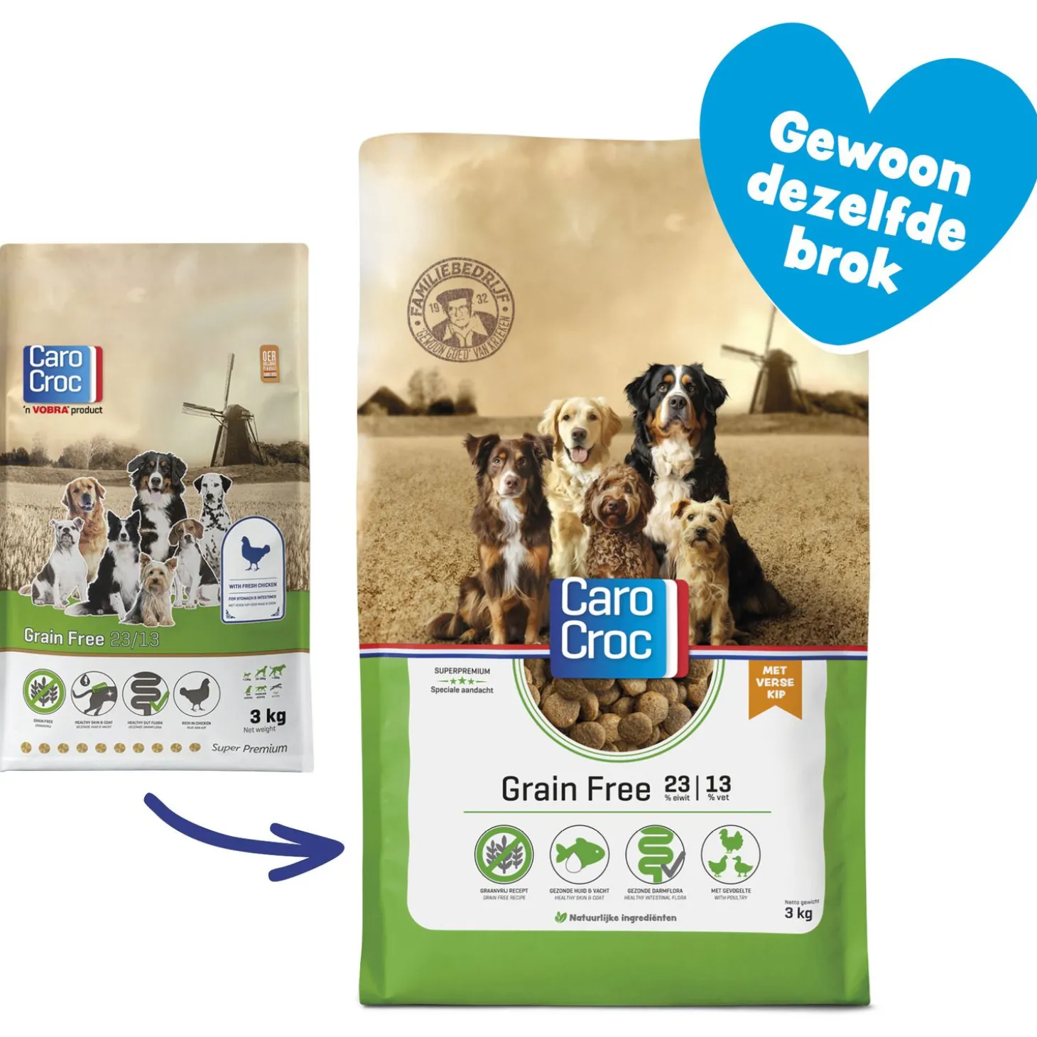 CaroCroc Grain Free is verkrijgbaar in 3kg – 15kg