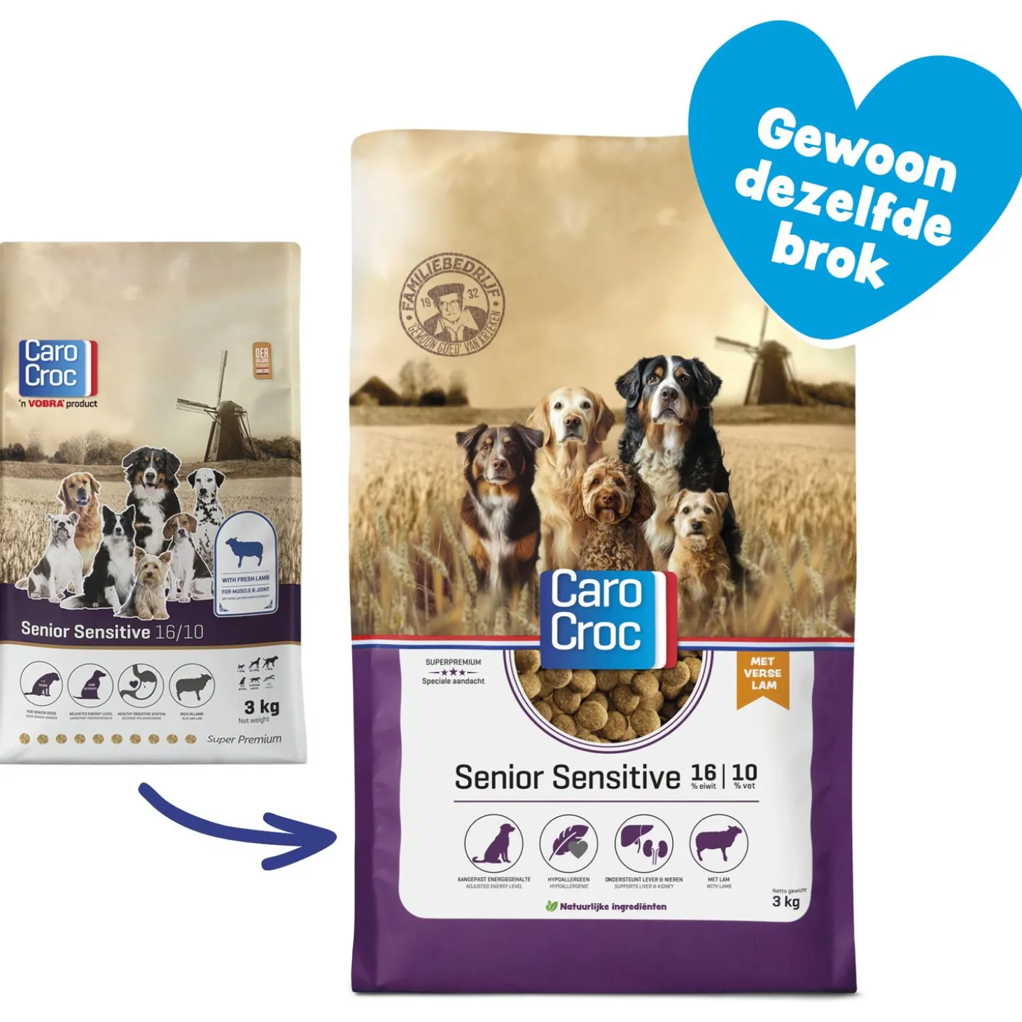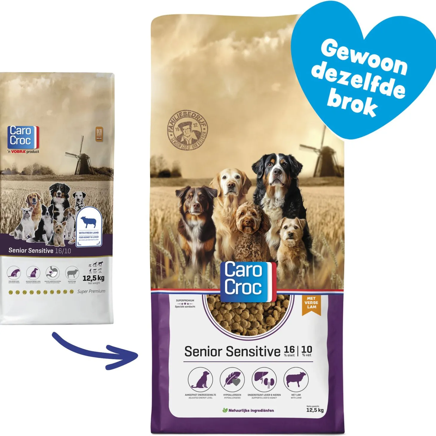 CaroCroc Senior Sensitive is verkrijgbaar in 3kg – 15kg