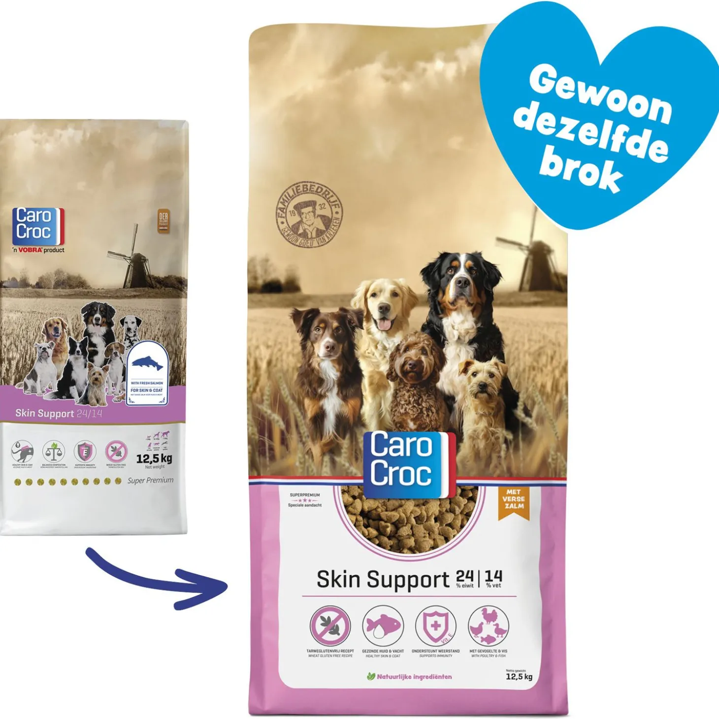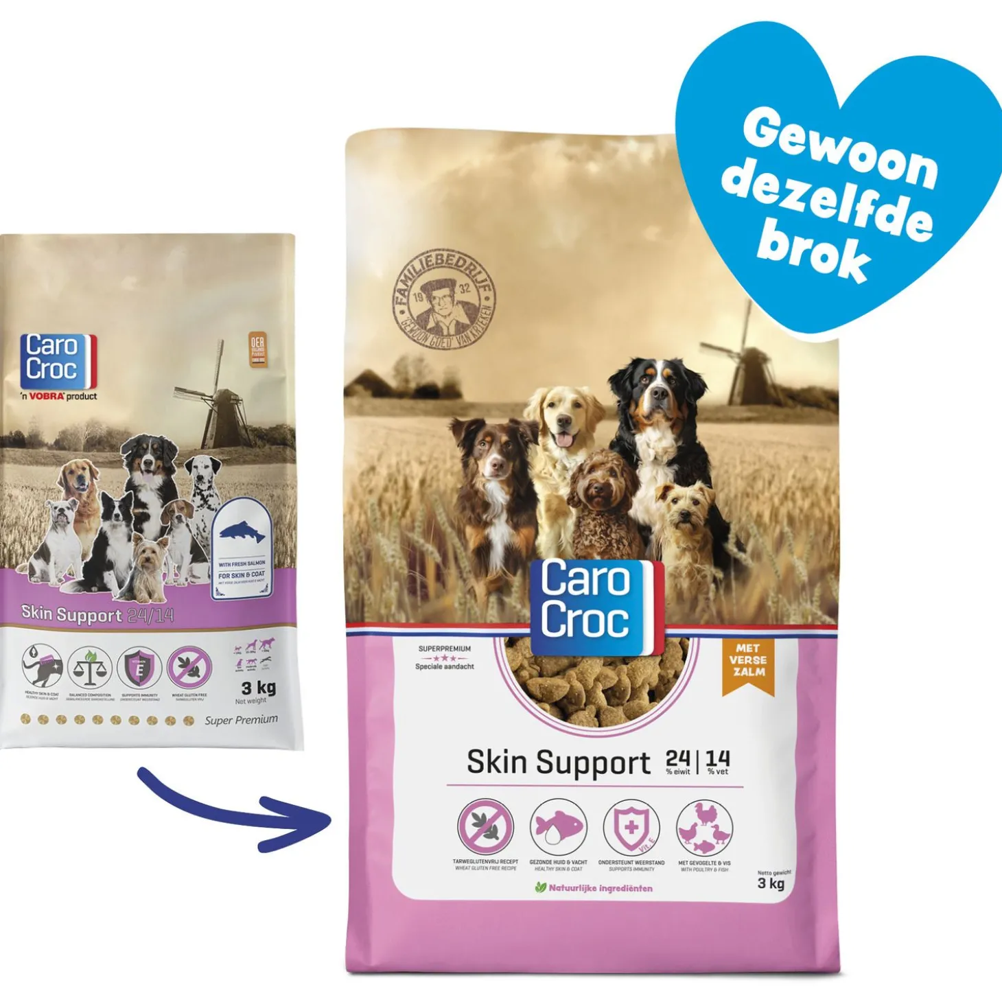 Lekker in je vel, dat willen we allemaal. Het zien van een hond met een gezonde en glanzende huid en vacht is het ideaal plaatje. Een mooie huid en een glanzende vacht gaat gepaard met een goede voeding. CaroCroc Skin Support is ontwikkeld om net even wat extra aandacht te besteden aan het bereiken van een gezonde huid en vacht. De keus voor CaroCroc Skin Support is al snel gemaakt wanneer je ziet dat jouw hond een gevoelige huid of afnemende huid- en vachtconditie heeft.