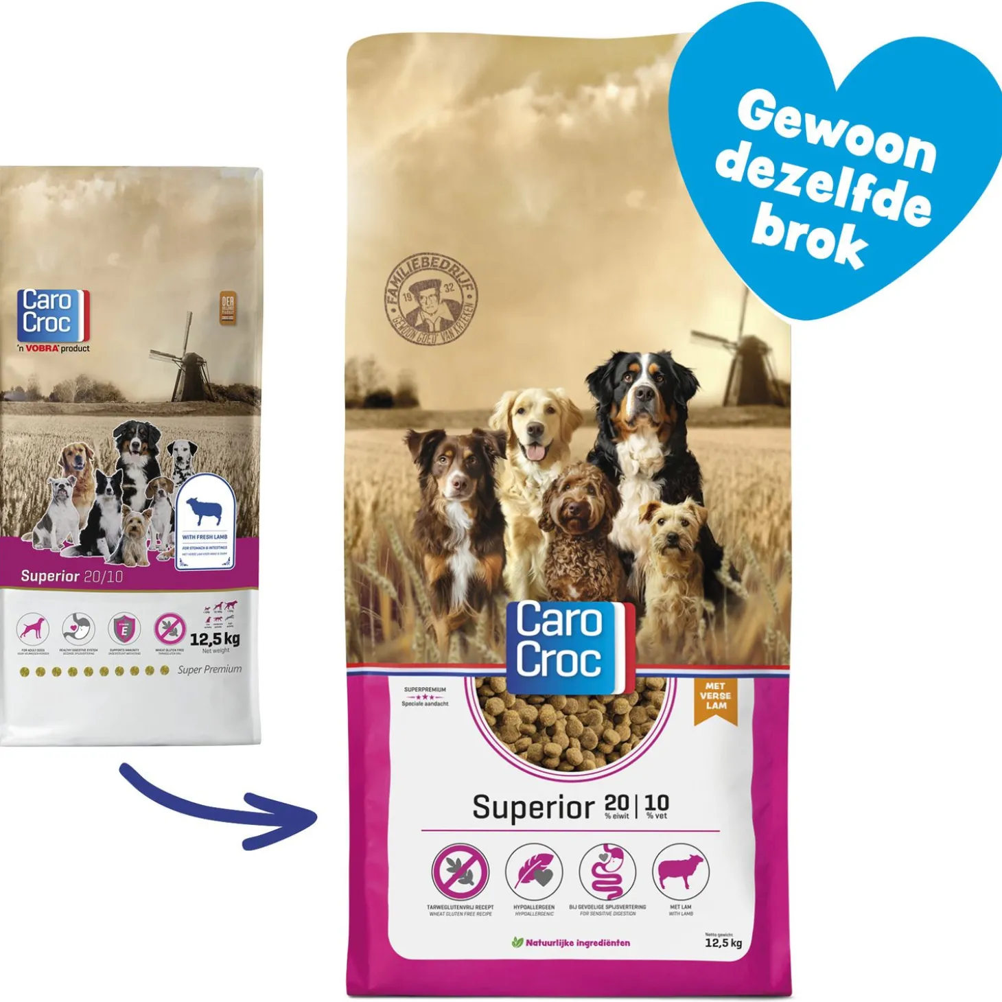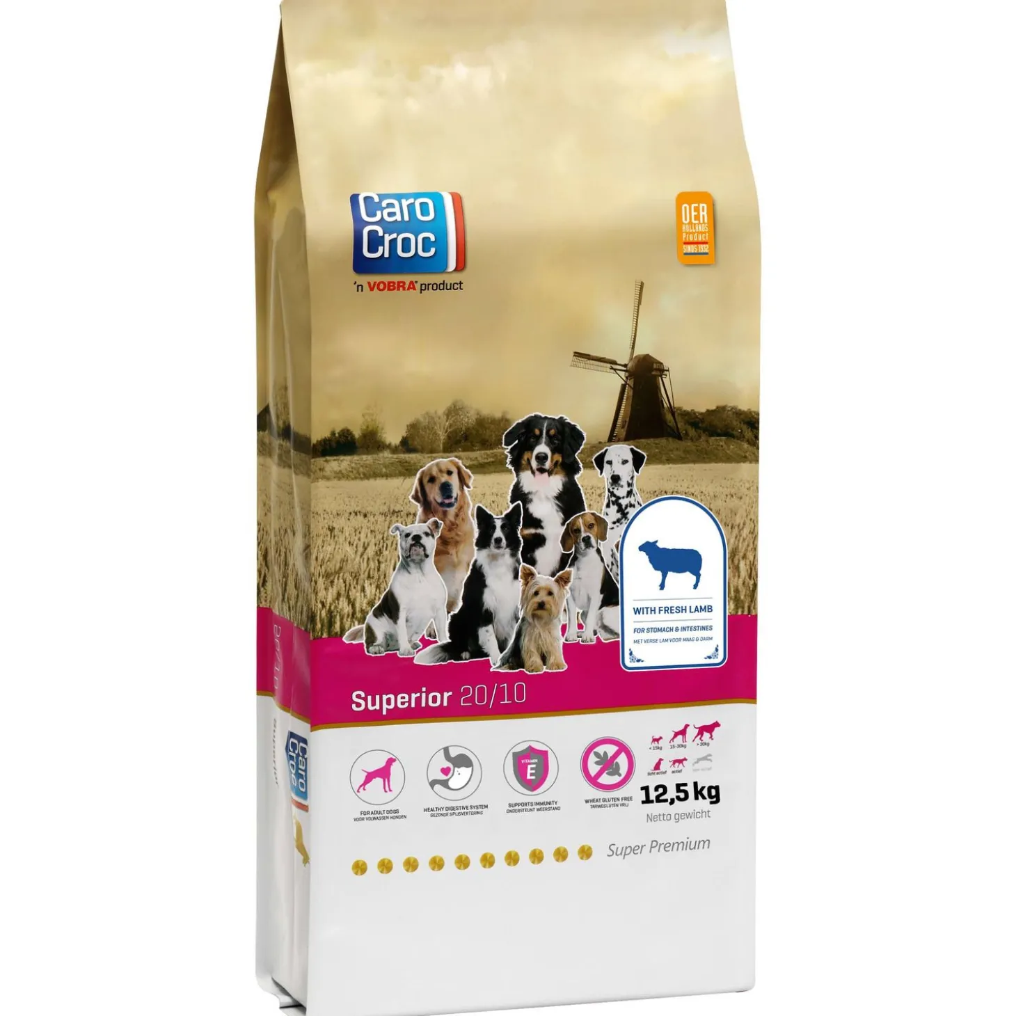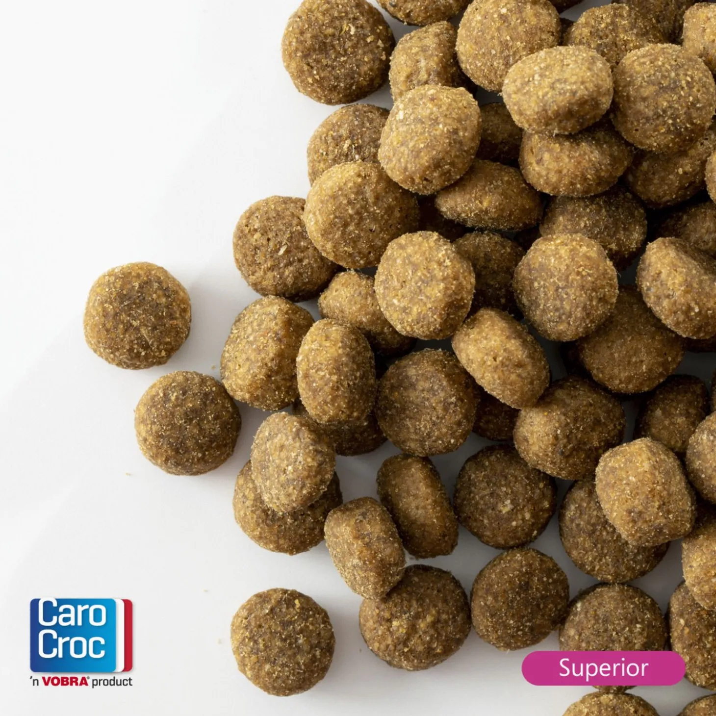 Geen enkele hond is hetzelfde. Je hebt honden die alles kunnen eten en je hebt honden die bij het minste geringste gevoelig reageren. Voor die honden is de CaroCroc Superior. Een smakelijke brok speciaal samengesteld om zorg te dragen voor een gezonde maag- en darmfunctie. Door de juiste toevoegingen draagt deze voeding ook bij aan het stimuleren van een goede vachtconditie.