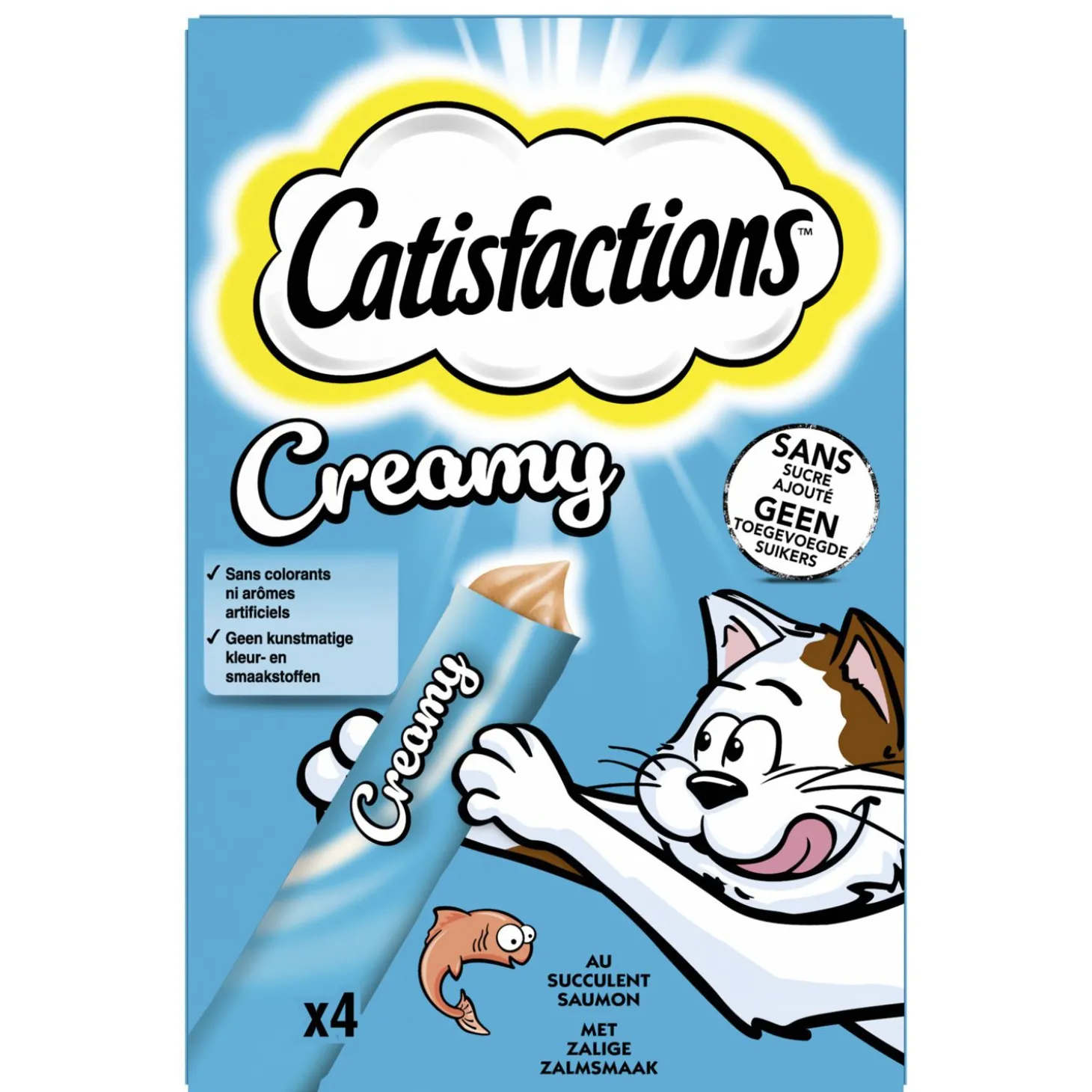 Kom dichter bij je kat met een traktatie waar ze dol op is. CATISFACTIONS® Creamy Snacks hebben een crèmige textuur en zijn ontworpen om uit de hand te kunnen geven. Eenvoudig uit het zakje te knijpen. Te voeren met de hand, te voeren in een kom, of te gebruiken als een topping. Een speciale ervaring waar je kat en jij dol op zullen zijn!
