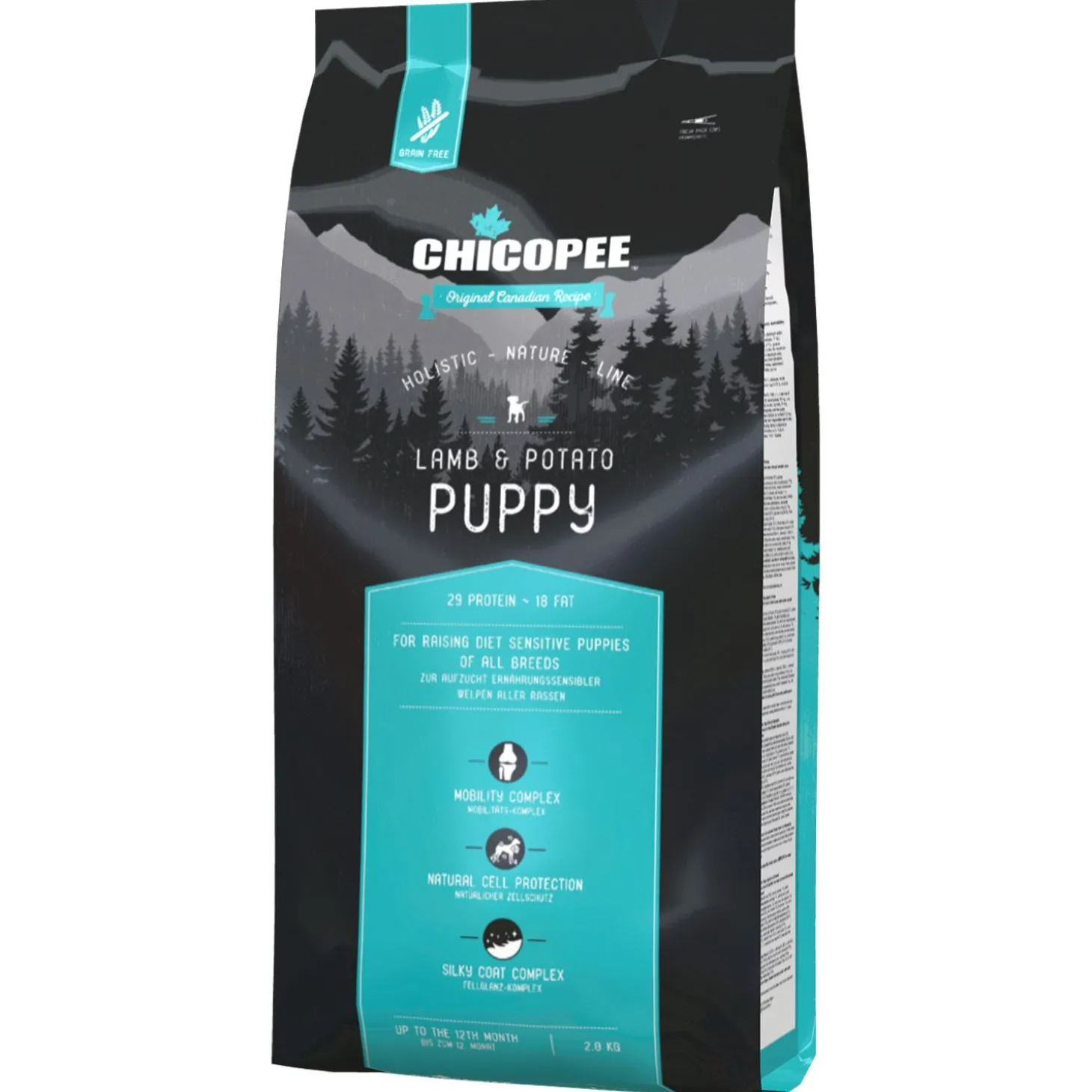 Met de Chicopee Holistic Nature lijn haal je kwalitatief voer voor je hond in huis. In het Puppy Lamb & Potato hondenvoer zit hoogwaardig lamsvlees. De aardappelen zijn makkelijk verteerbaar en leveren genoeg koolhydraten op. Een uitgebalanceerd niveau aan Calcium, Fosfor en andere mineralen stimuleert de ontwikkeling van sterke botten en tanden. Door de aangepaste hoeveelheid eiwitten en vetten in de voeding, is je puppy verzekerd van een evenwichtige groei. Met het Chicopee HNL Puppy Lamb & Potato volledige hondenvoer krijgt je hond alle voedingsstoffen die hij of zij nodig heeft.