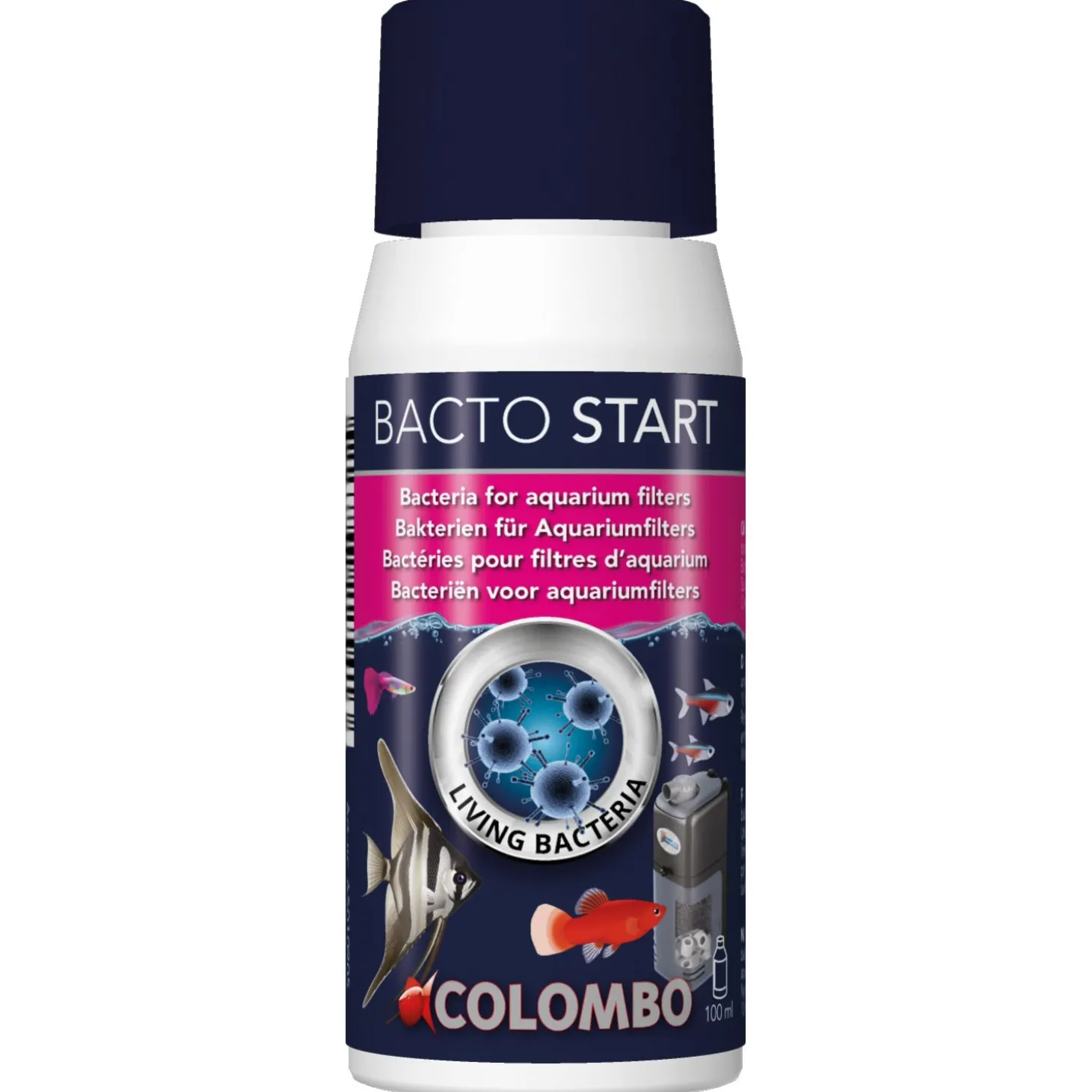 - Colombo Bacto Start werkt het beste in combinatie met Colombo Aqua Start. Aqua Start maakt het water geschikt voor de vissen. Bacto Start zorgt voor de levende bacteriën.