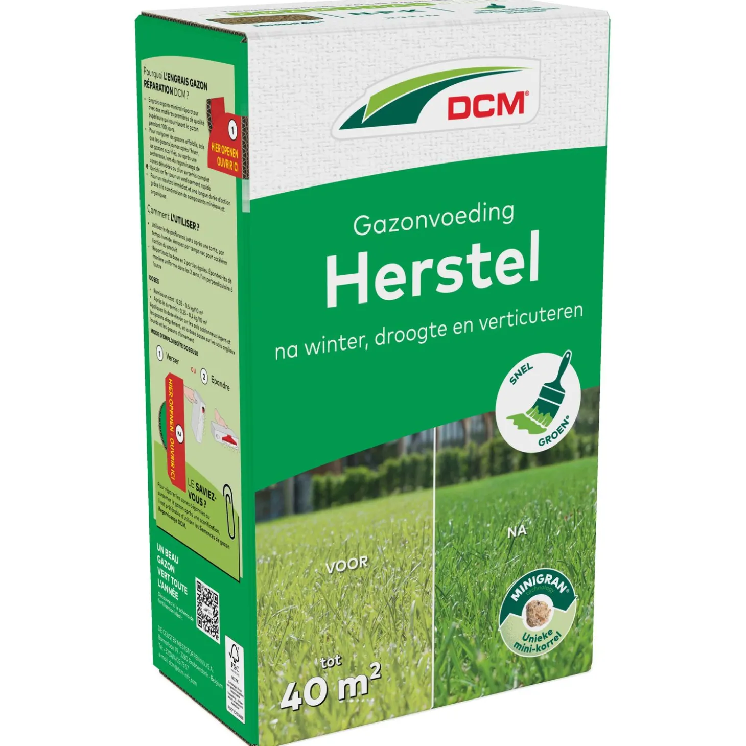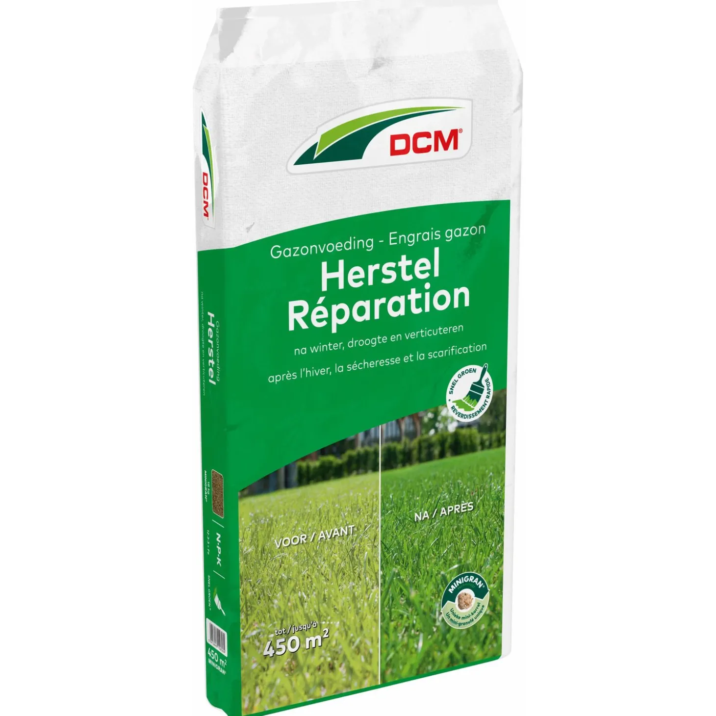 - Gazonmeststof om verzwakte gazons te herstellen zoals: vergeelde gazons na de winterperiode, gazons na het verticuteren, na droogteperiodes, bij het inzaaien van kale plekken of bij algemene doorzaai