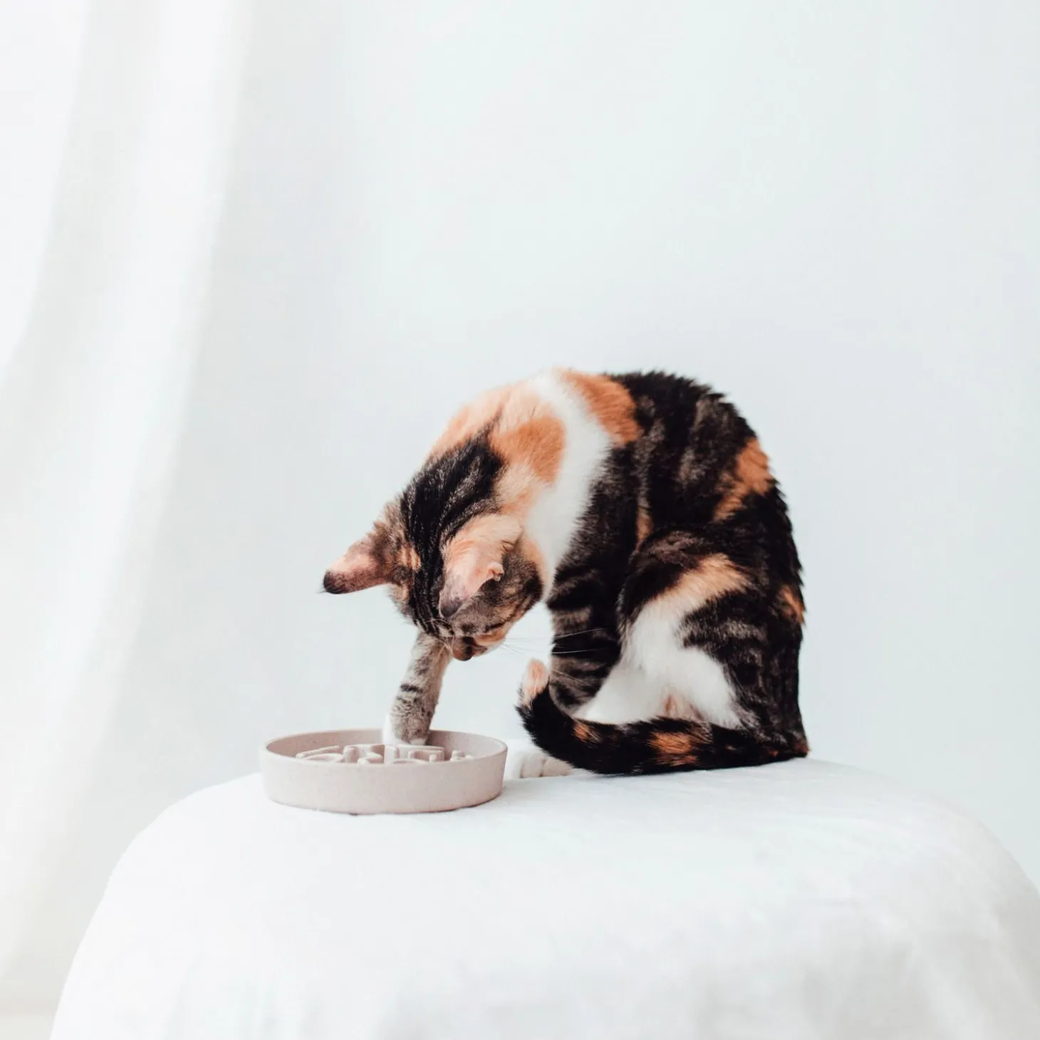 De District 70 Cat Slow Feeder is verkrijgbaar in de kleuren beige, lichtblauw en donkergrijs.
