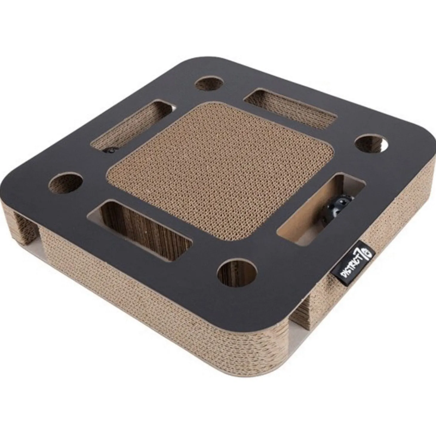 De Spy heeft meerdere elementen om je kat te entertainen. Zoals rinkelende balletjes om mee te spelen. Deze balletjes zitten verstopt in de Spy en je kat kan hier vanuit allerlei hoeken en op verschillende manieren tegen aan slaan, op jagen of mee spelen. Wanneer je kat even geen behoefte heeft aan de balletjes kan hij z’n nagels zetten in het golfkarton aan de bovenkant en zijkanten.