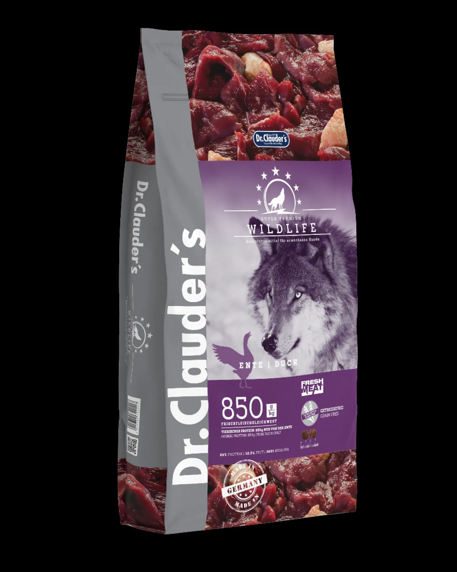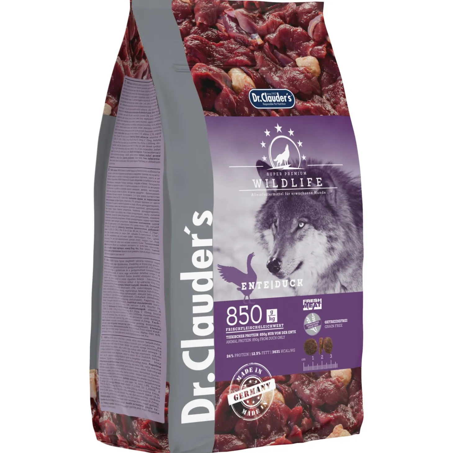 Dr.Clauder’s Wildlife Eend is een complete voeding voor jouw volwassen hond. Het is gemaakt met eend als belangrijkste eiwitbron. Eend is een hoogwaardig eiwit dat goed verteerbaar is en rijk is aan omega-3 en omega-6-vetzuren. Deze vetzuren zijn belangrijk voor een gezonde huid en vacht, een goede spijsvertering en een sterk immuunsysteem.