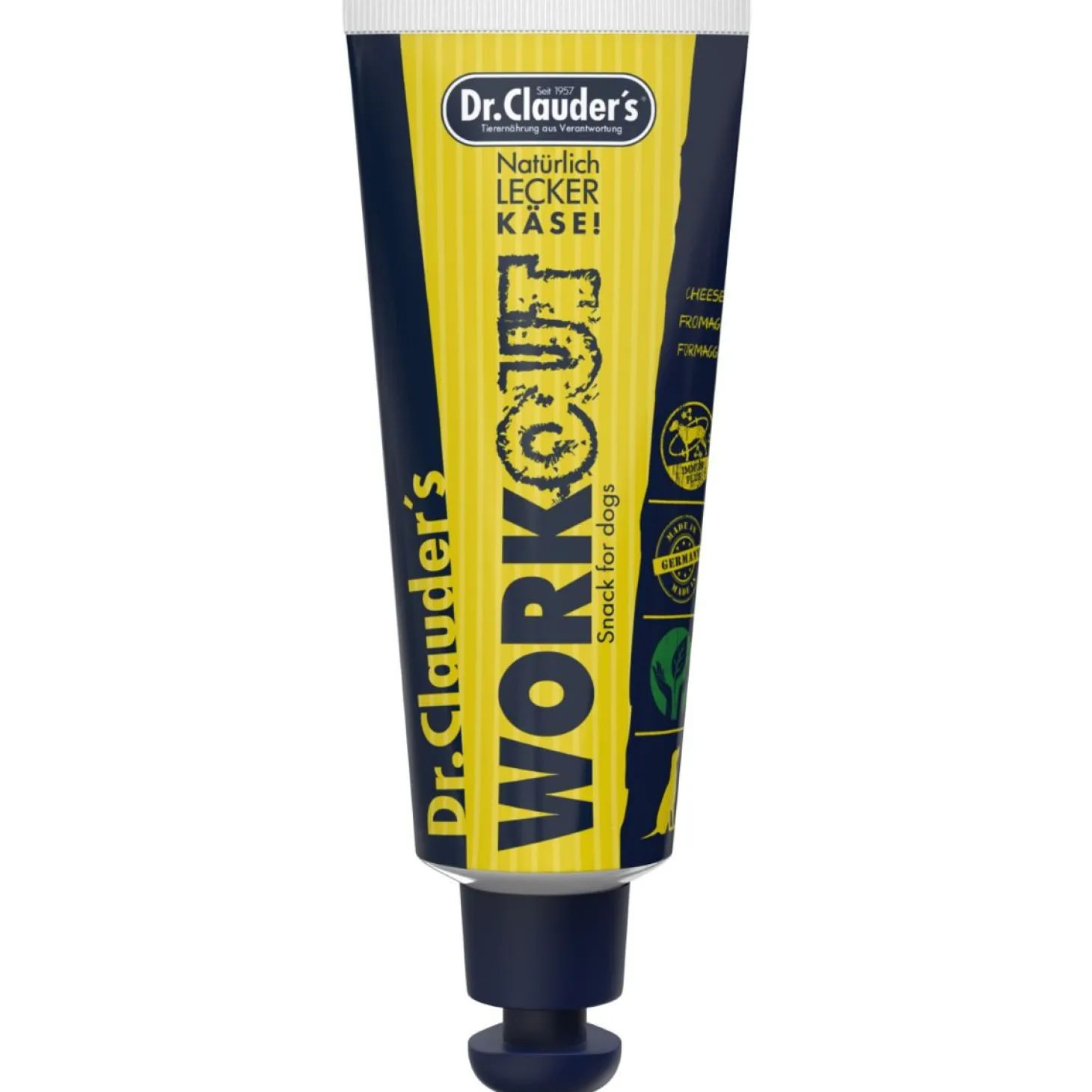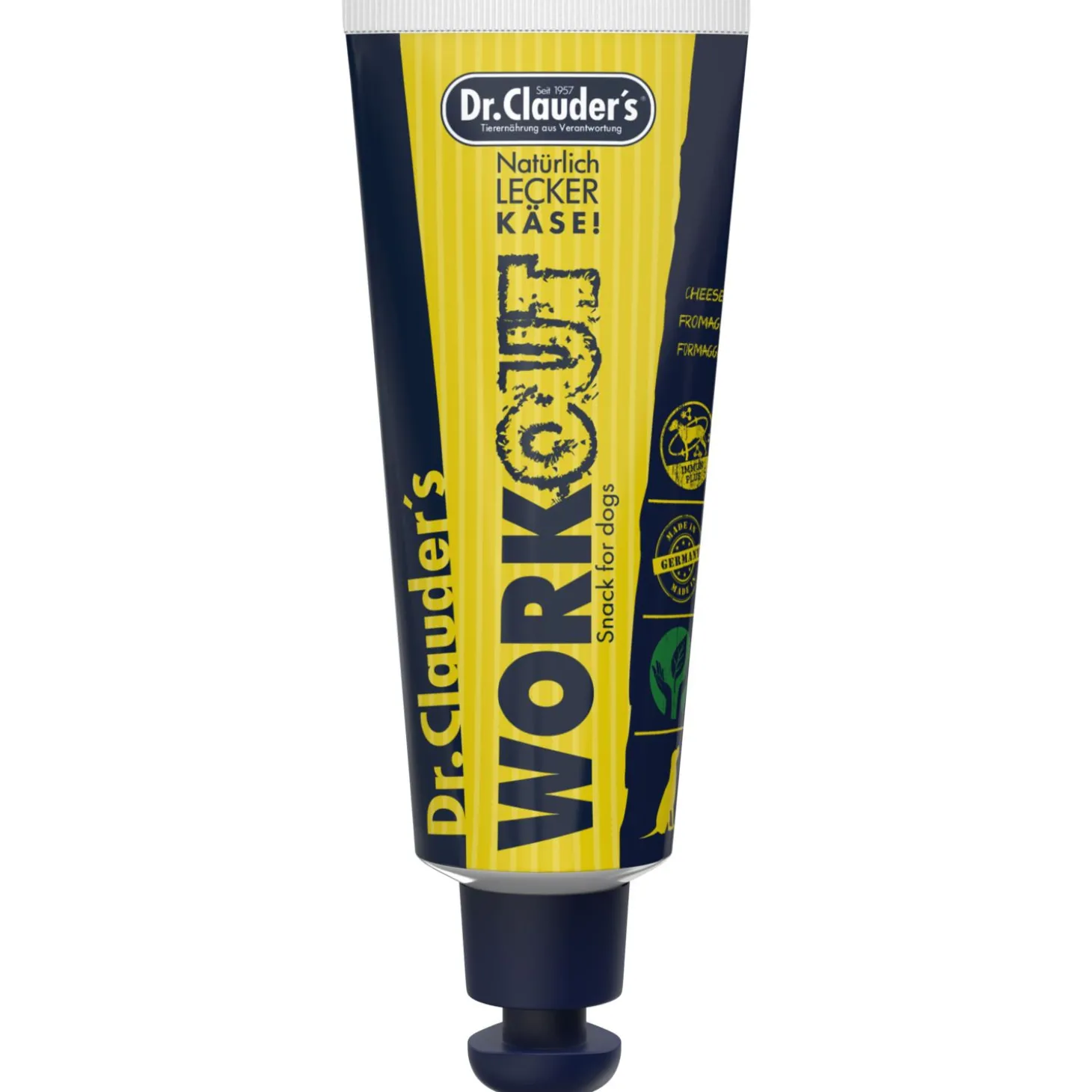 Voor honden die medicijnen niet innemen, kan je de Workout snack Kaas van Dr. Clauders gebruiken om de medicatie in te verstoppen. Zo heeft jouw hond niet door dat hij medicatie inneemt. Ook kan het gebruikt worden als beloning. De inhoud van de tube is 100g.