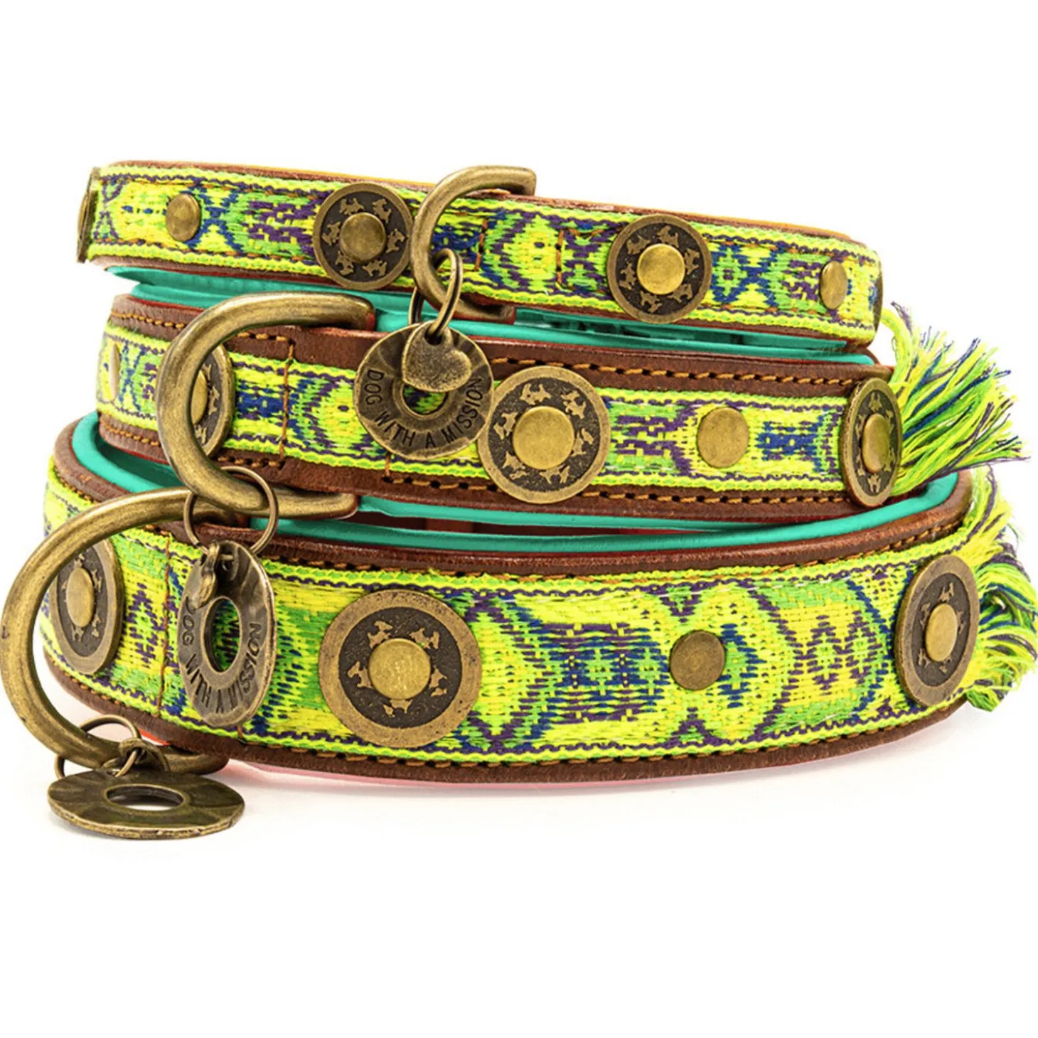 De Boho Diego is een knaller van een halsband met zijn prachtige groene design. Volledig met de hand gewoven, want alleen het beste is goed genoeg voor jouw hond. Alles behalve your average halsband, en niet te stoppen in het park.
