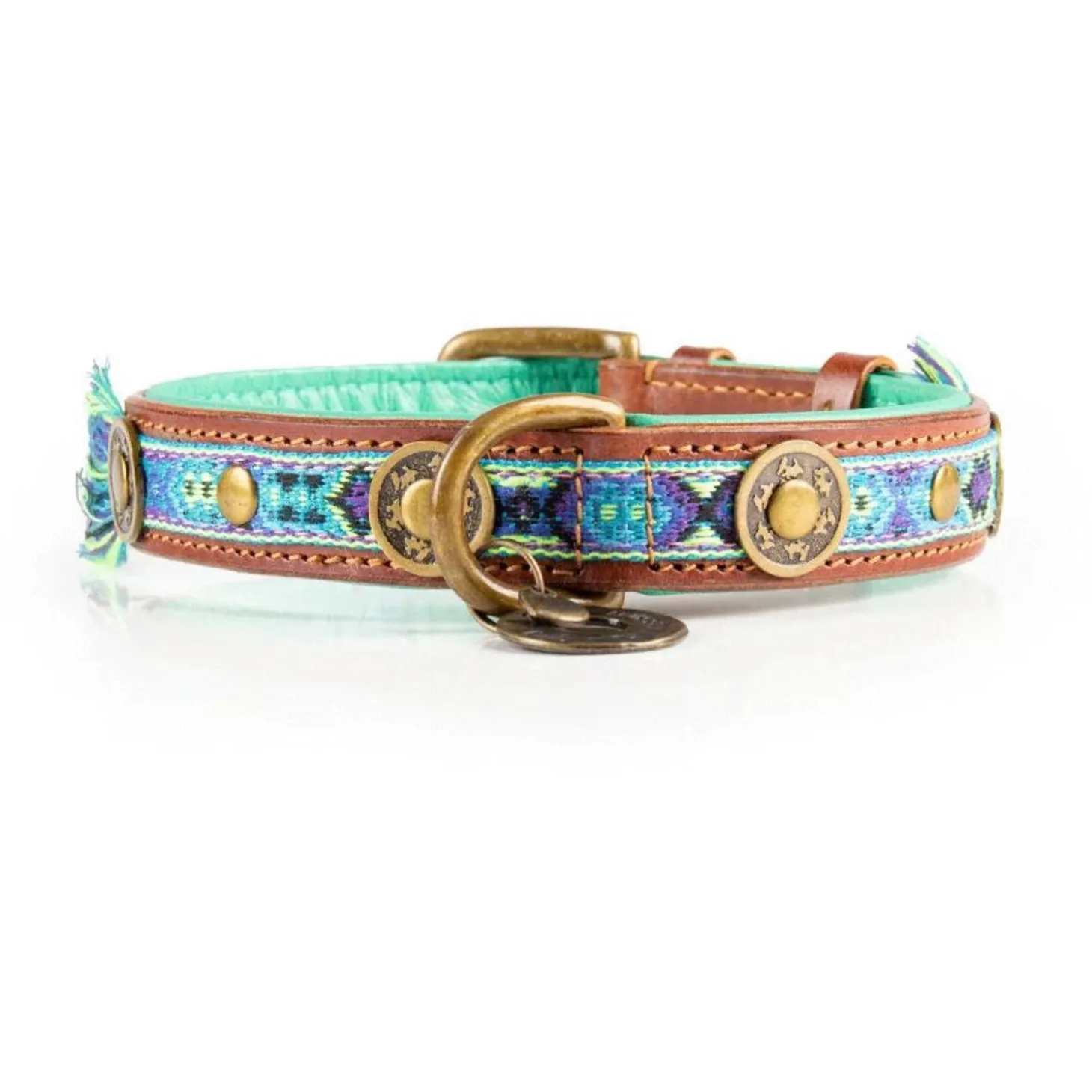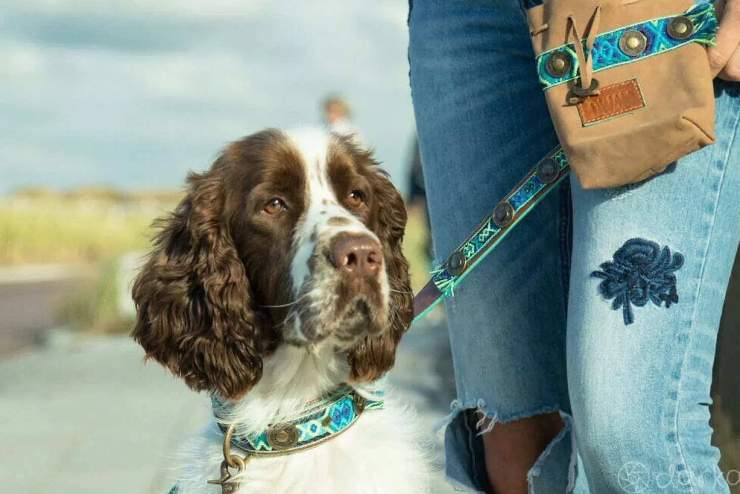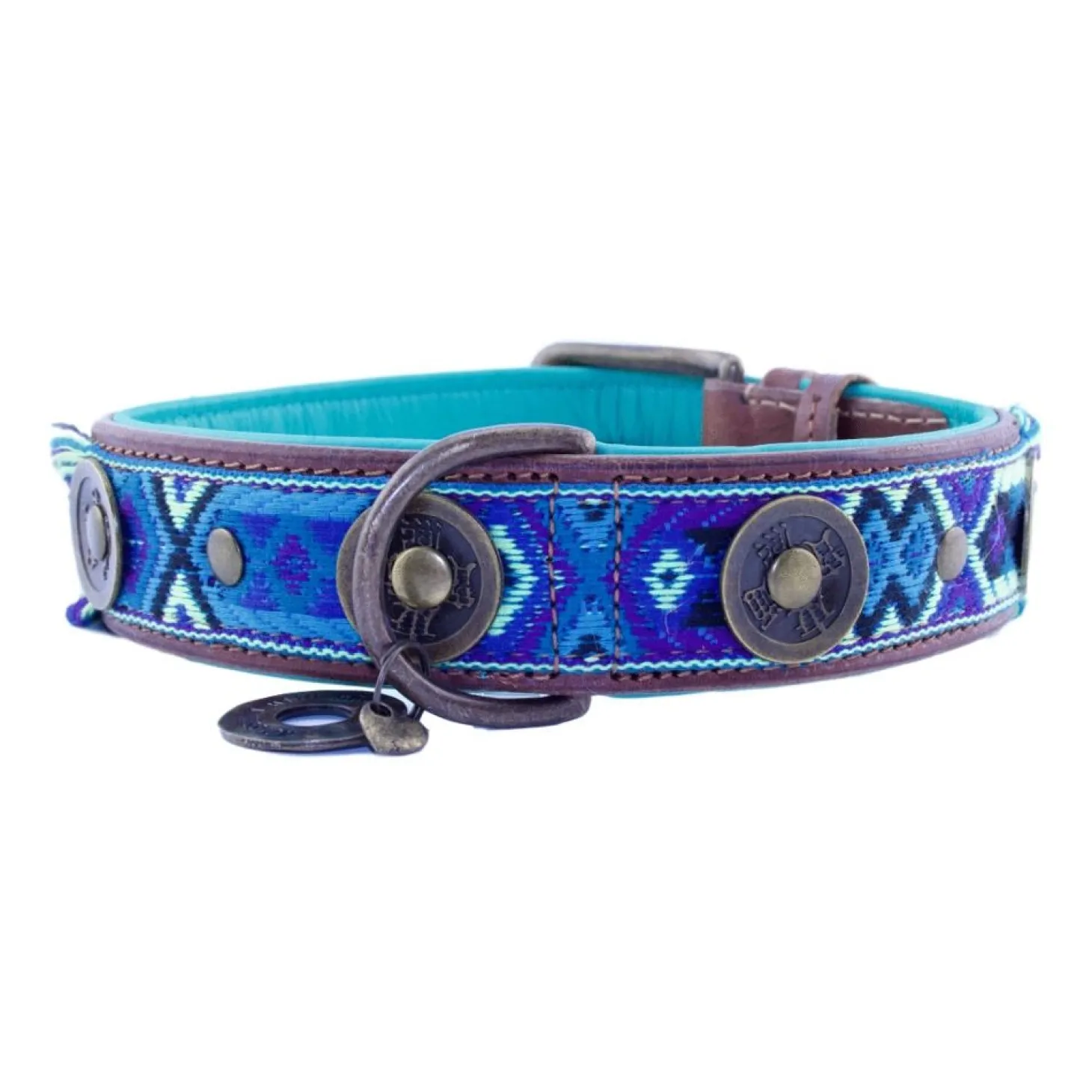 Wanneer je op pad gaat met je hond, wil je er natuurlijk wel flitsend uitzien. DWAM heeft een assortiment met prachtige riemen en halsbanden waarmee je hond er altijd stijlvol bij loopt. De Juan van Dog With A Mission is een handgemaakte, oersterke halsband voor je viervoeter. De Juan is gemaakt van stof en leer met turquoise en blauwe details voor een bohemian look. De halsband wordt afgemaakt met een bedeltje.